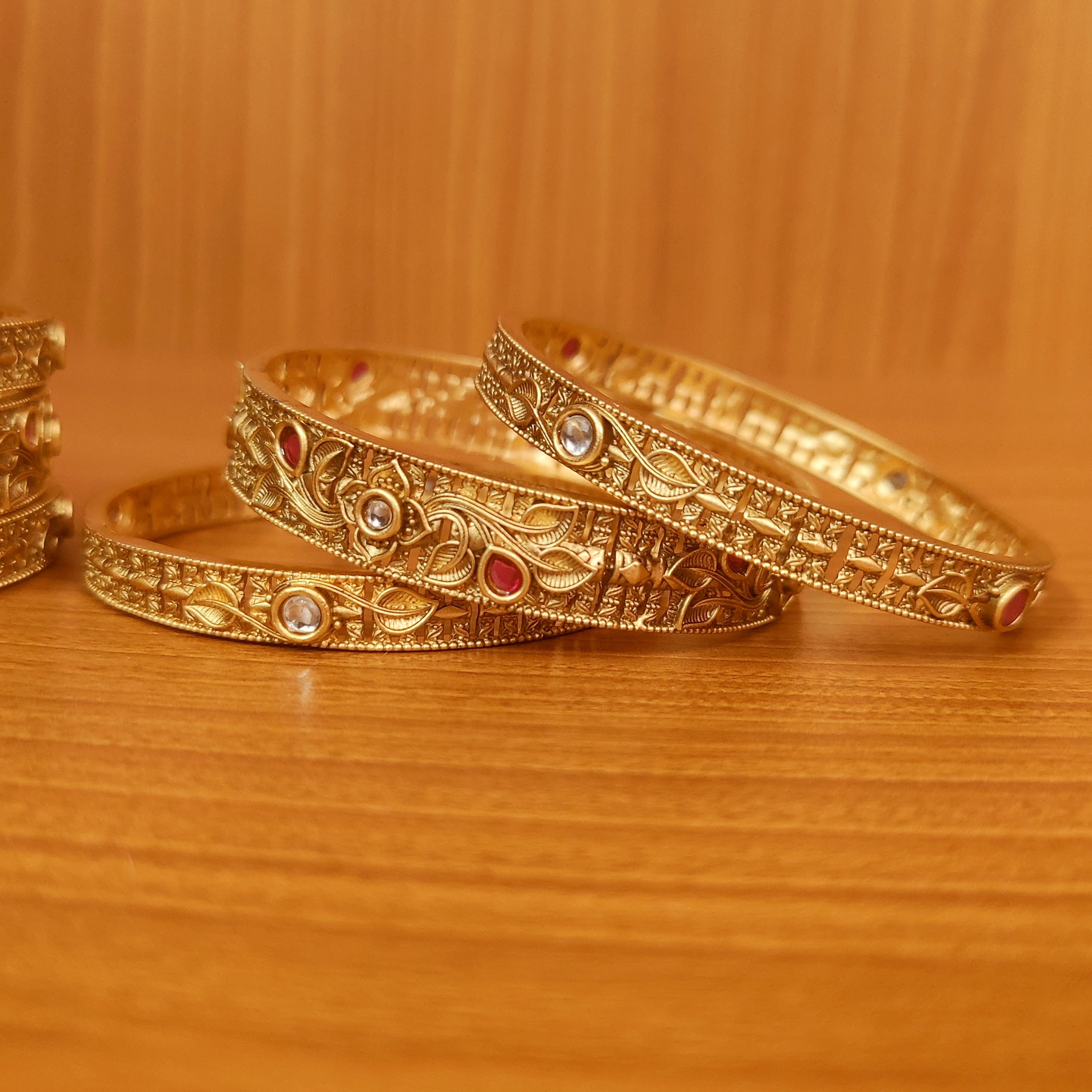 22KT FINISHING GOLD PLATED RED CARVING ARTIFICIAL BANGLES