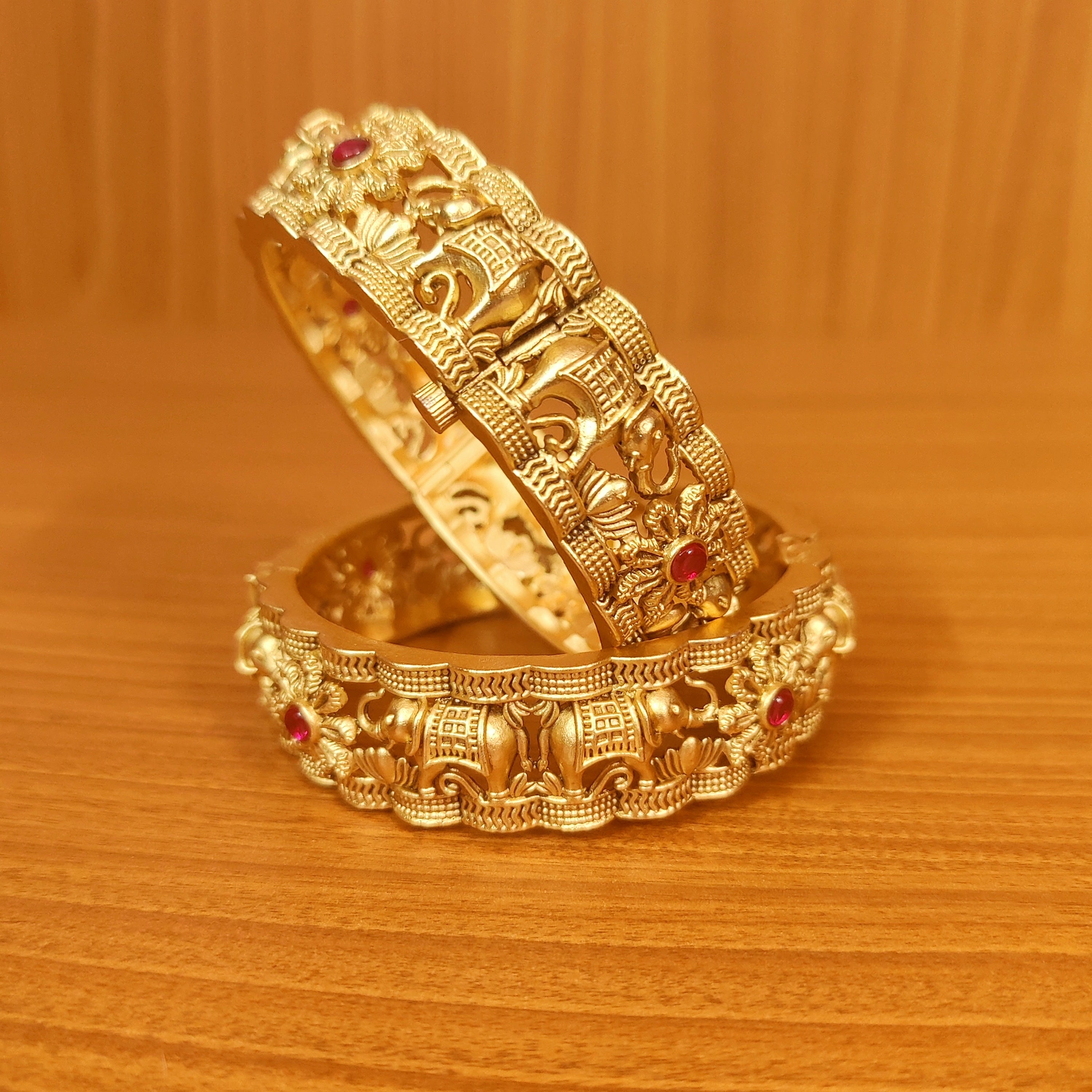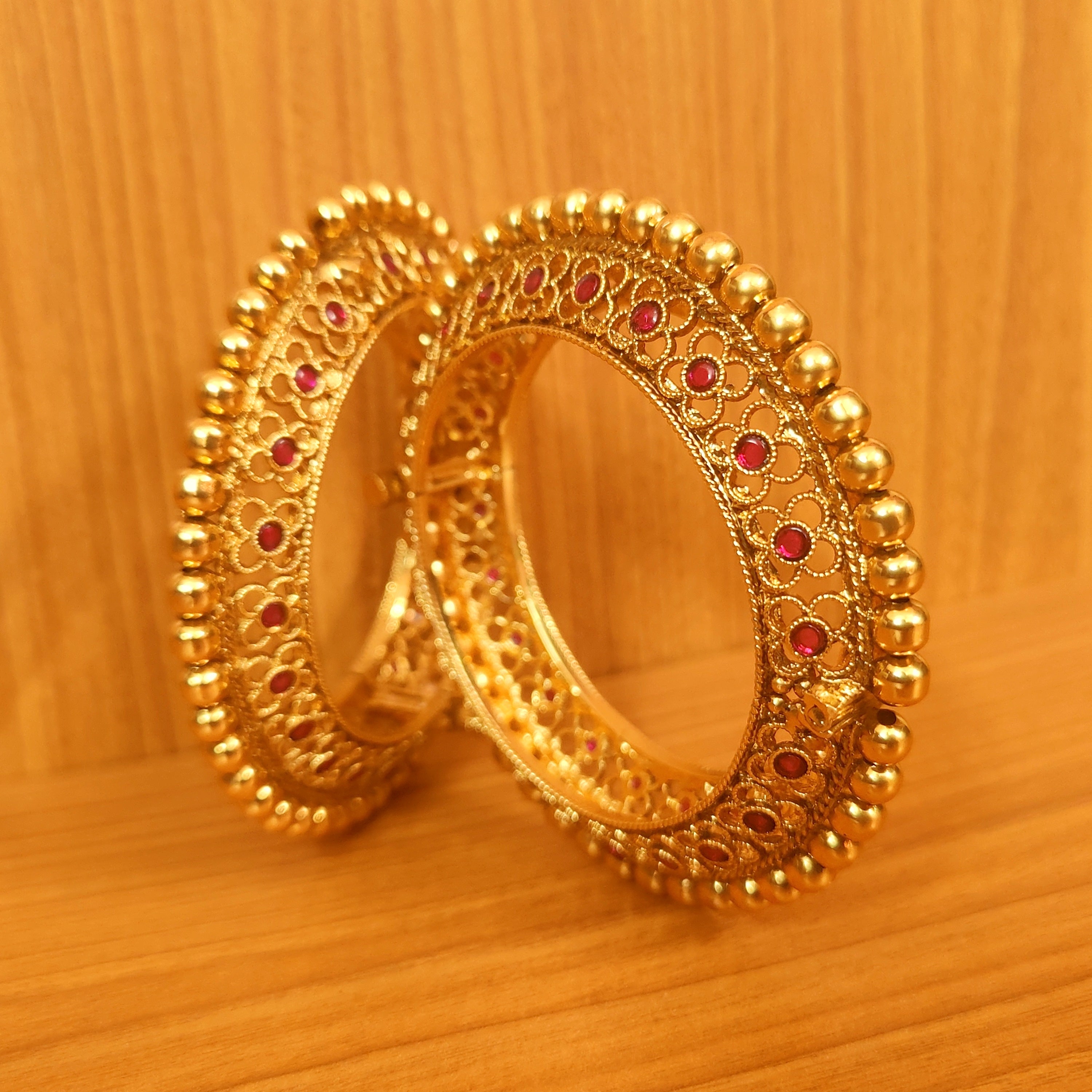 RUBY & KUNDAN LOOK ROYAL MATT GOLD LOOK OPENABLE BANGLES
