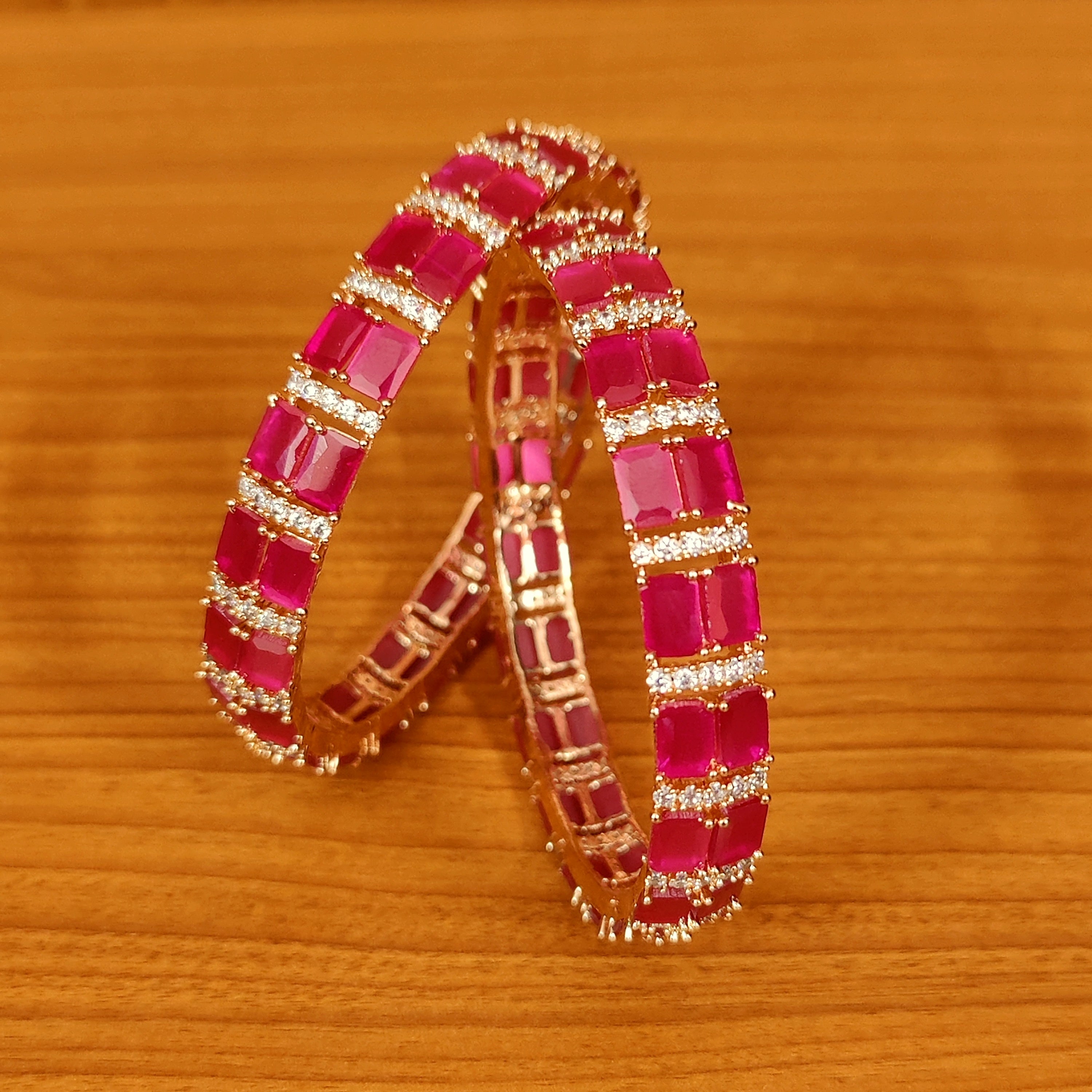 RUBY COLOUR CZ & AD STUDDED ROSE GOLD BANGLES