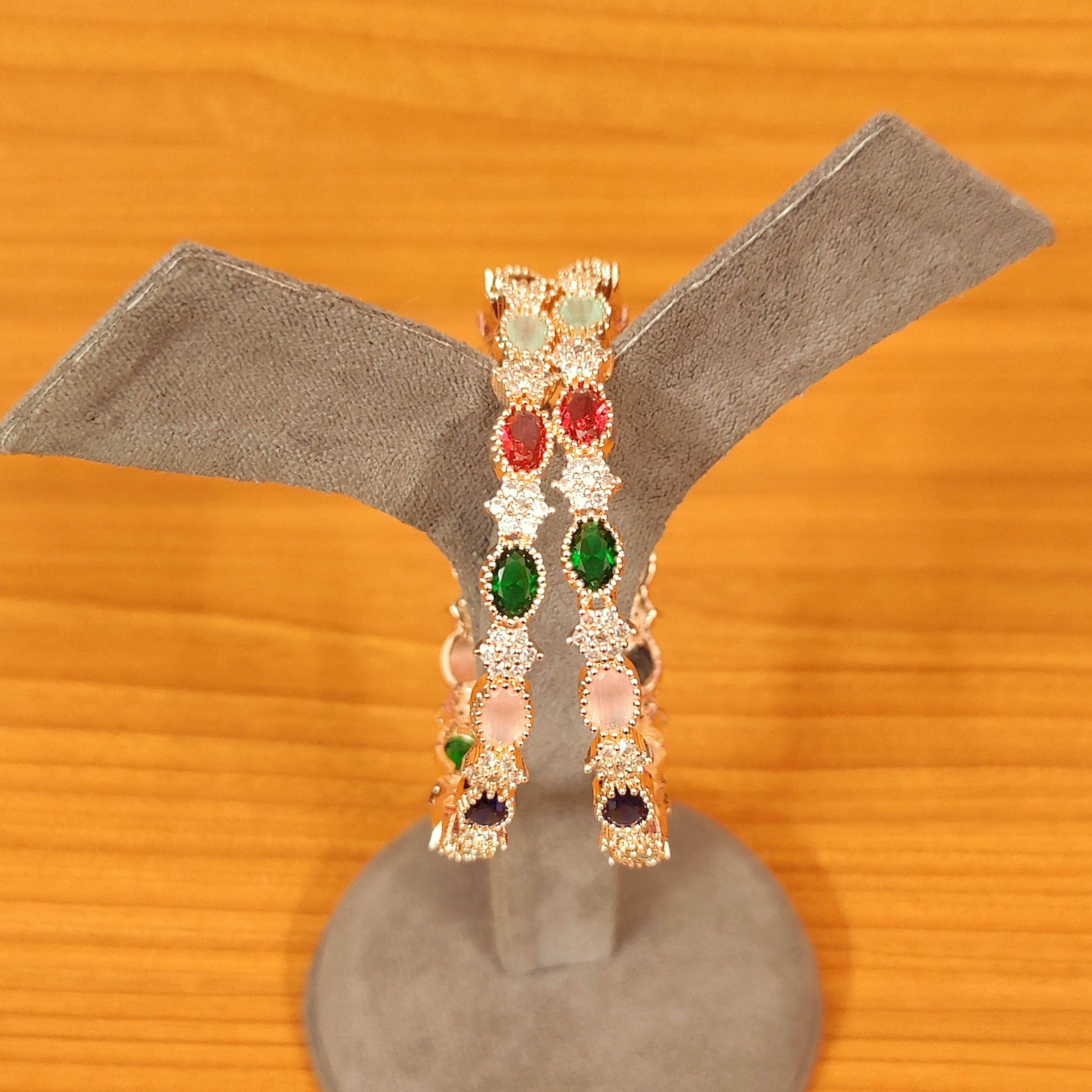 MULTICOLOUR CZ STUDDED ROSE GOLD BANGLES
