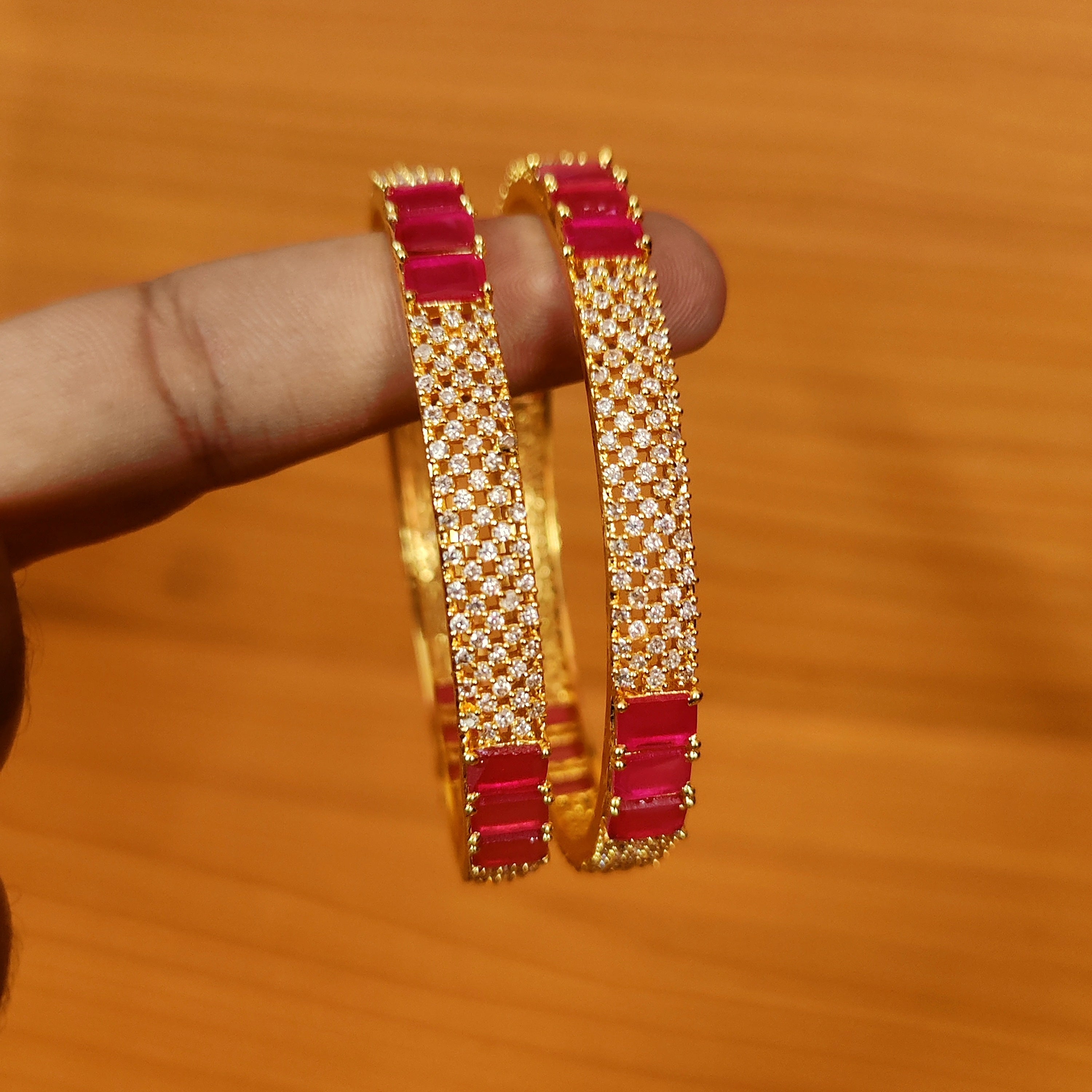 RUBY COLOUR CZ STUDDED GOLD PLATED AD BANGLES