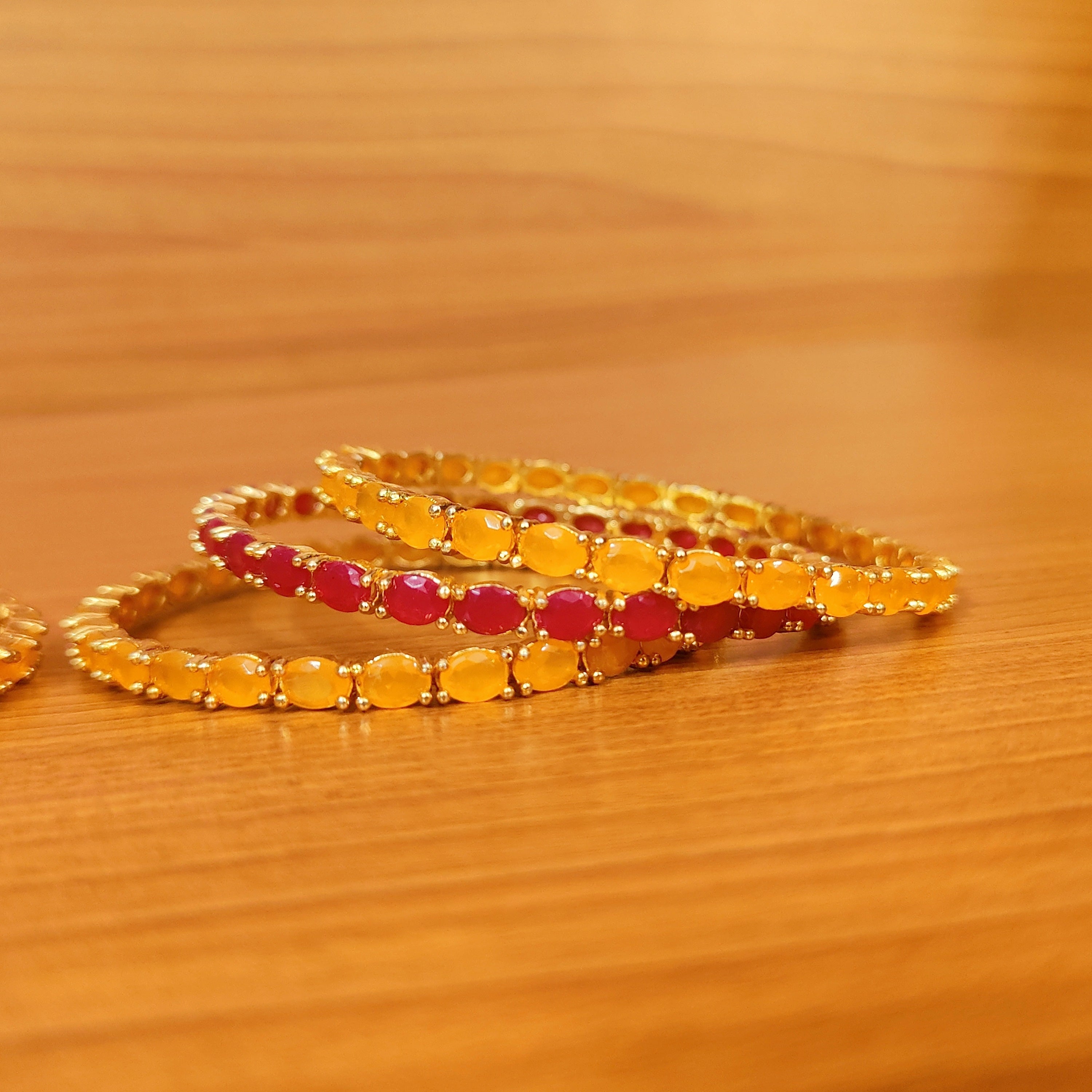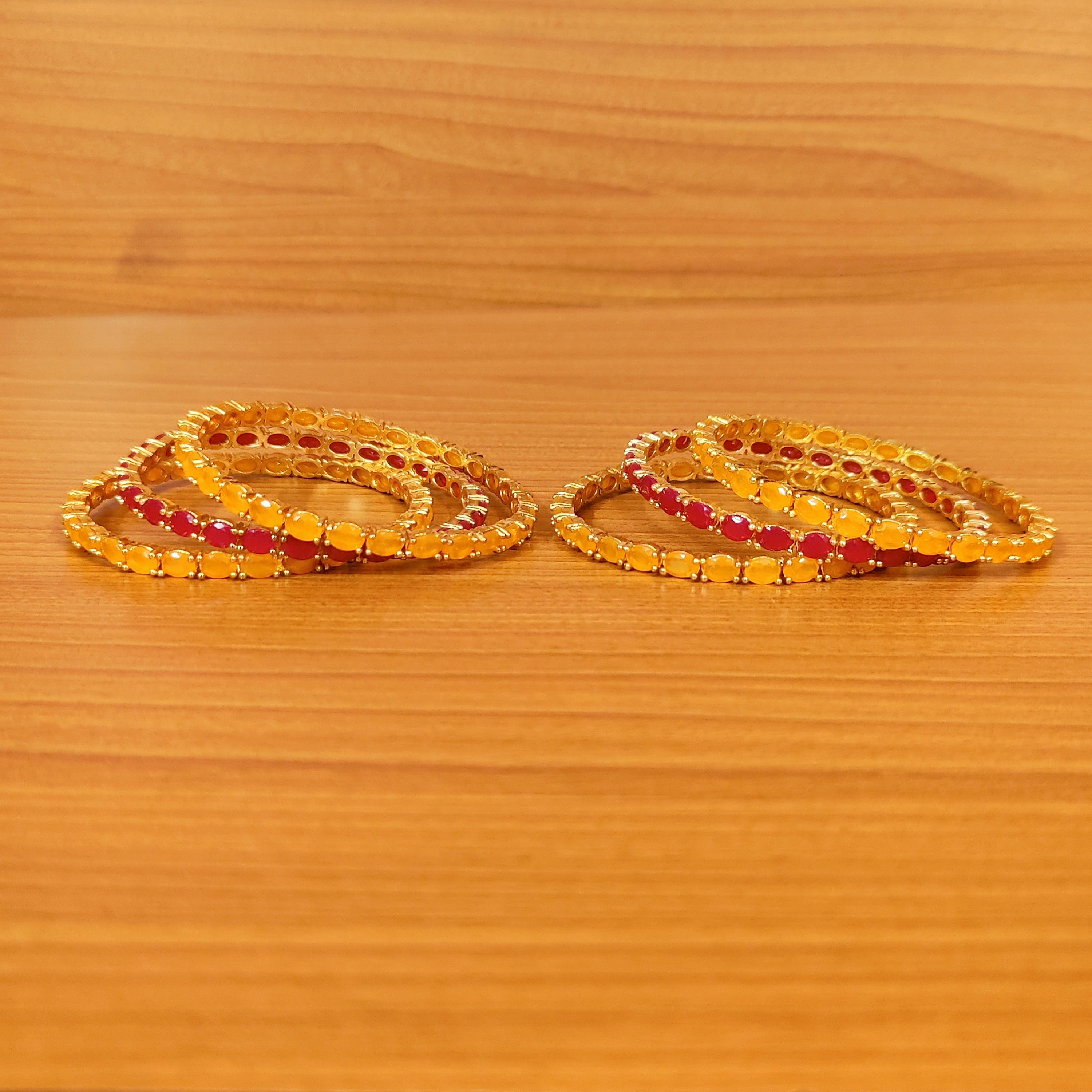 YELLOW & RED COLOUR OVAL SHAPED SINGLE LINE BANGLES