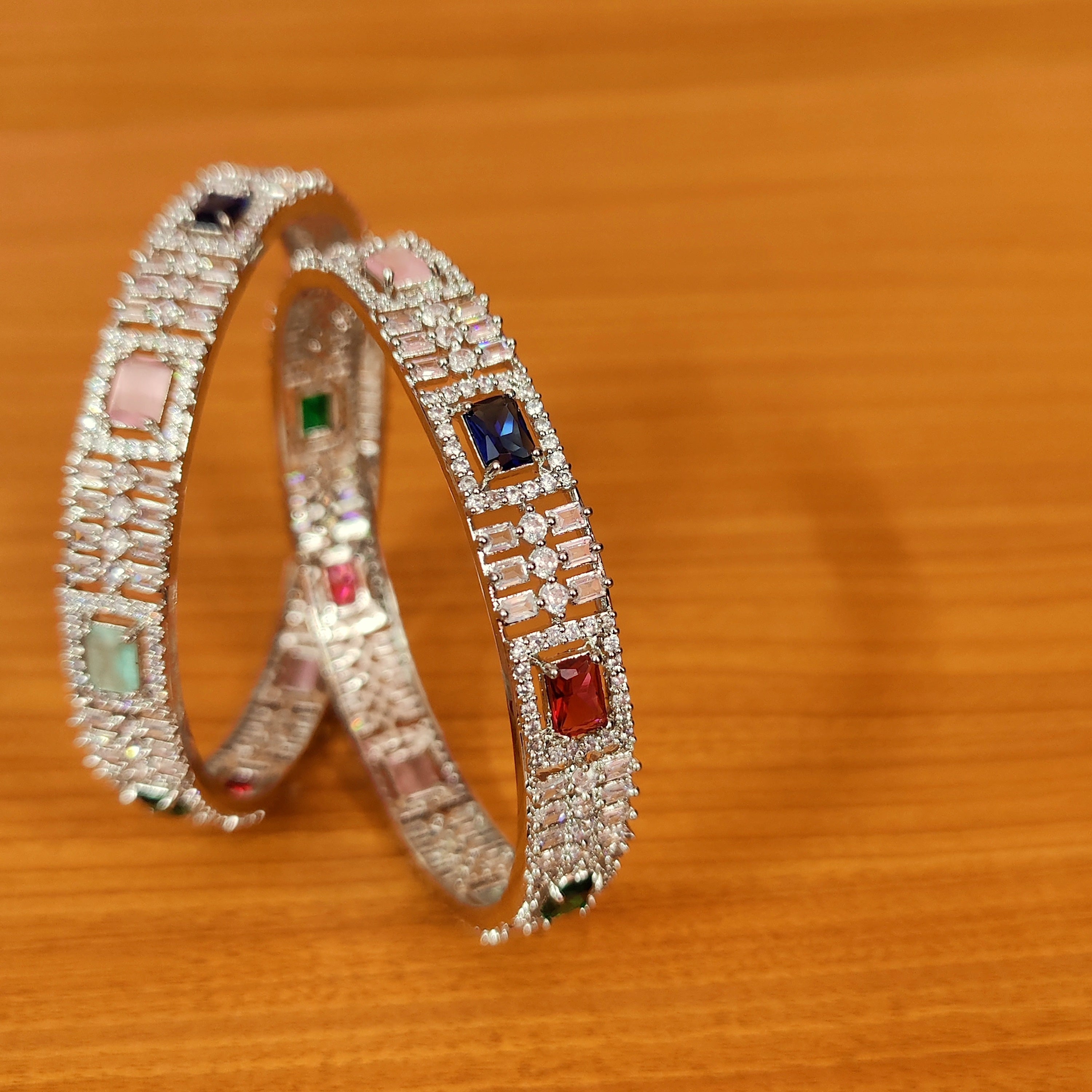 MULTICOLOUR CZ STUDDED SILVER PLATED BANGLES