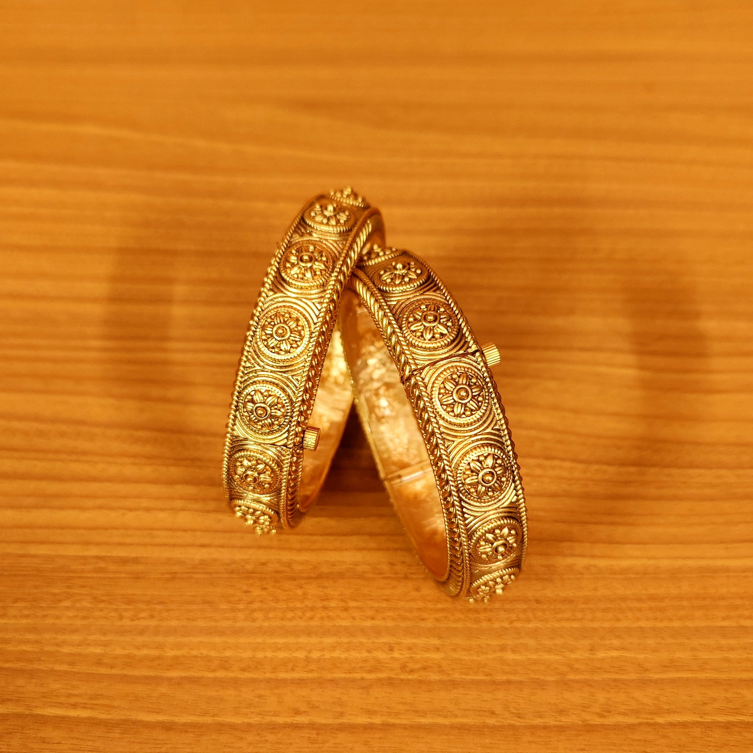 ANTIQUE GOLD PLATED REAL GOLD PATTERN OPENABLE BANGLES