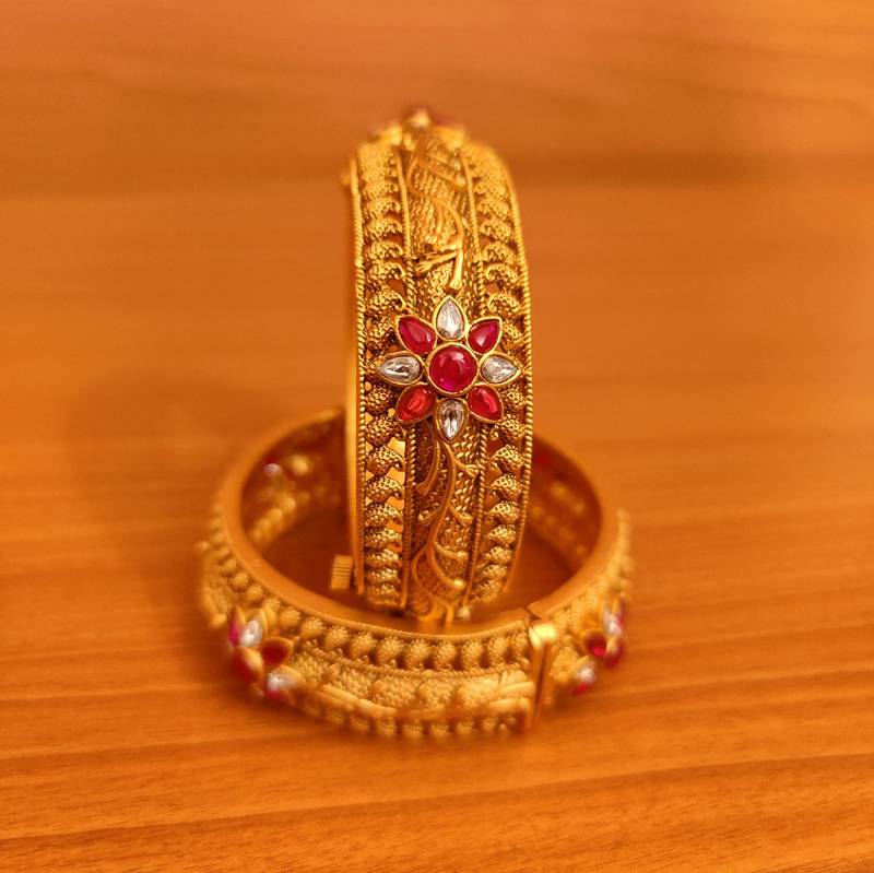 ANTIQUE GOLD LOOK RUBY KUNDAN LOOK OPENABLE BANGLES