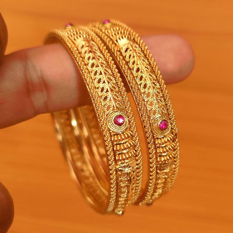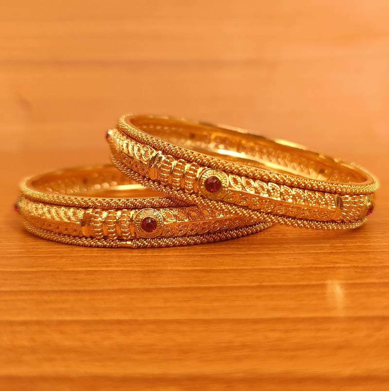 ANTIQUE MATT GOLD LOOK RUBY OPENABLE BANGLES