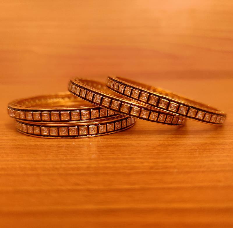 ZIRCON STUDDED GOLD PLATED ANTIQUE BANGLES