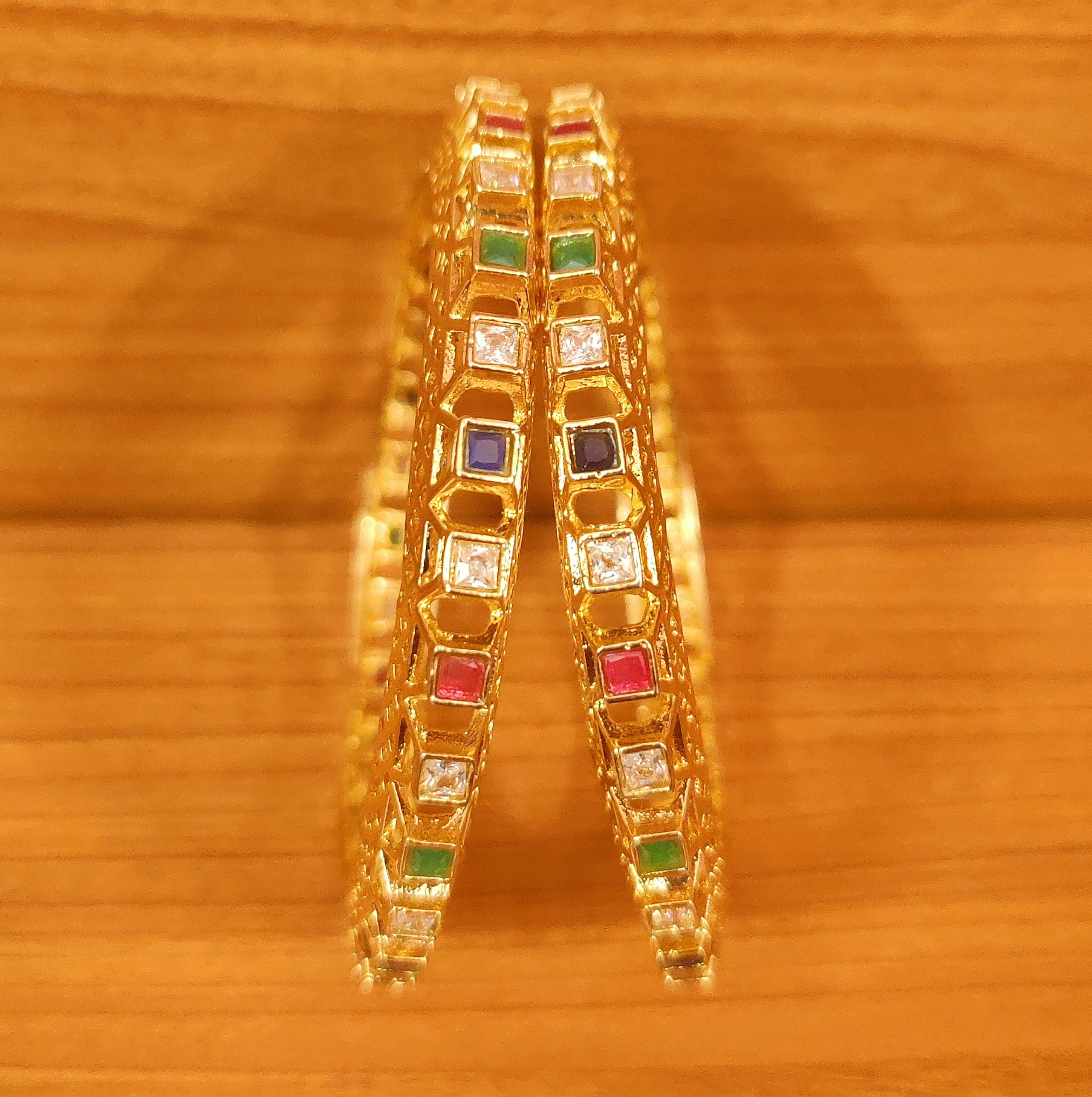 MULTICOLOUR CZ STONES GOLD PLATED BANGLES