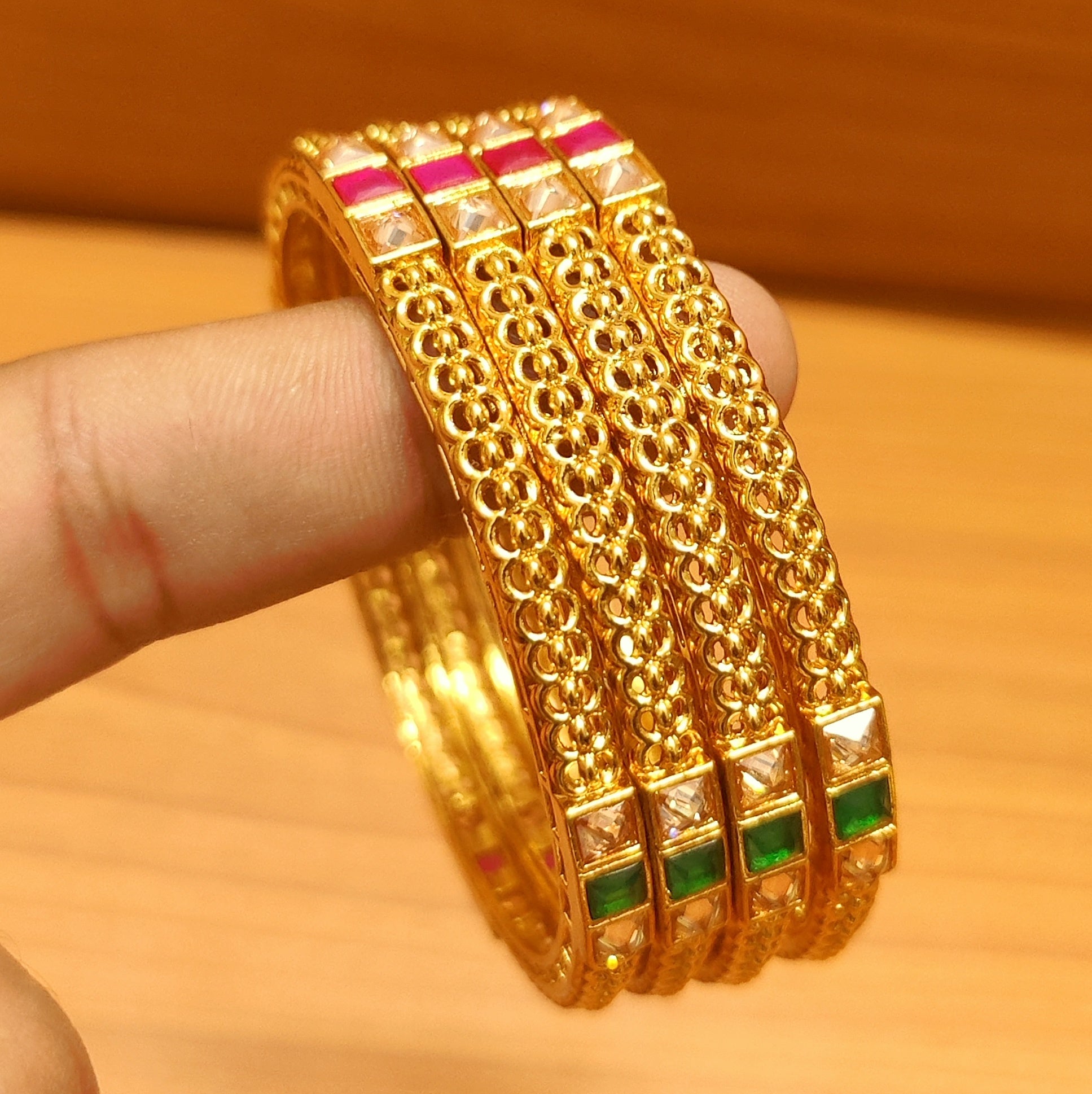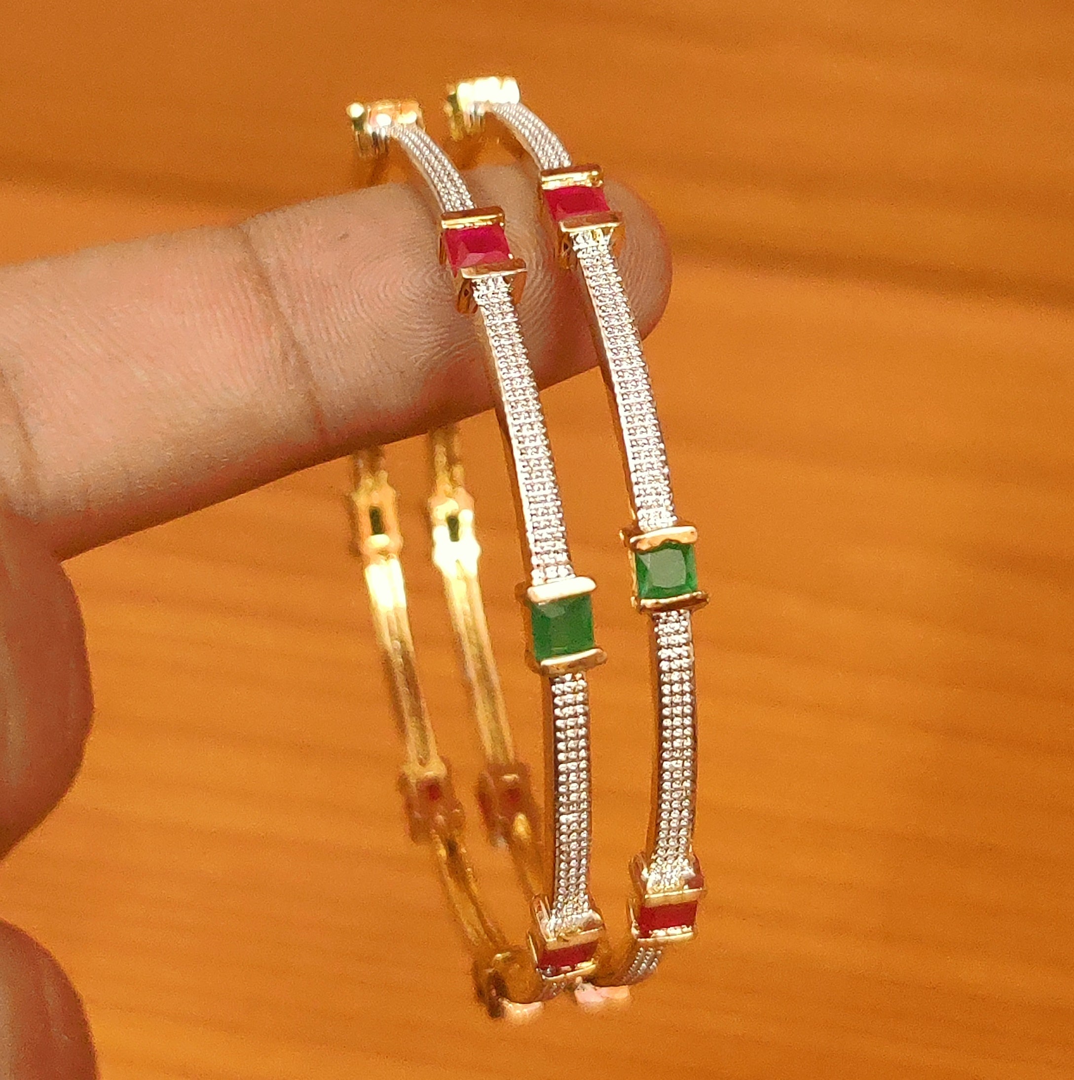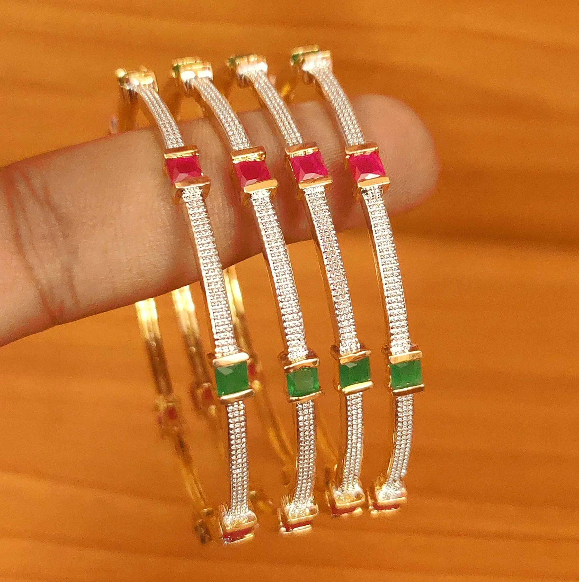 RUBY & EMERALD CZ STUDDED DIAMOND LOOK BANGLES
