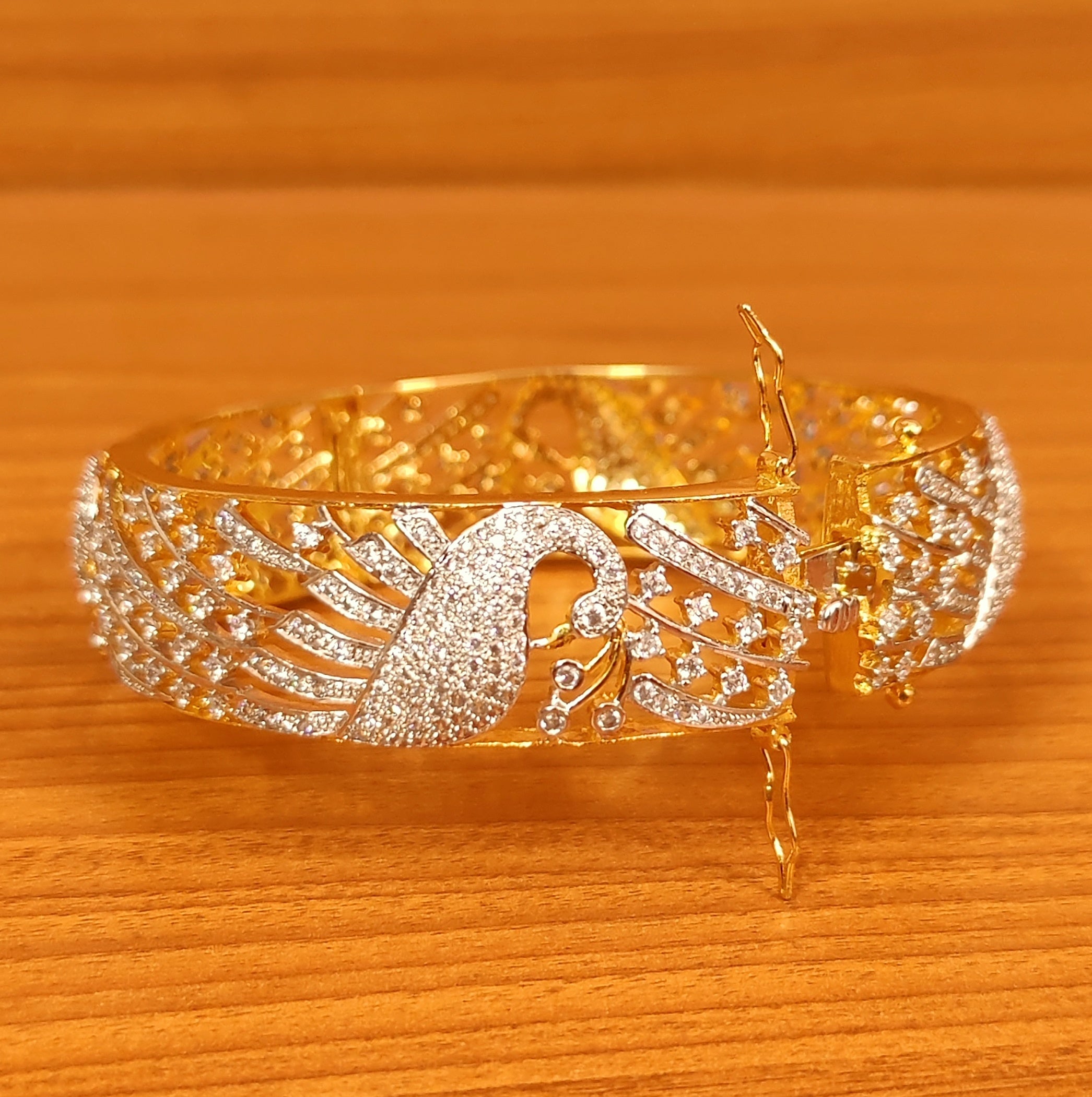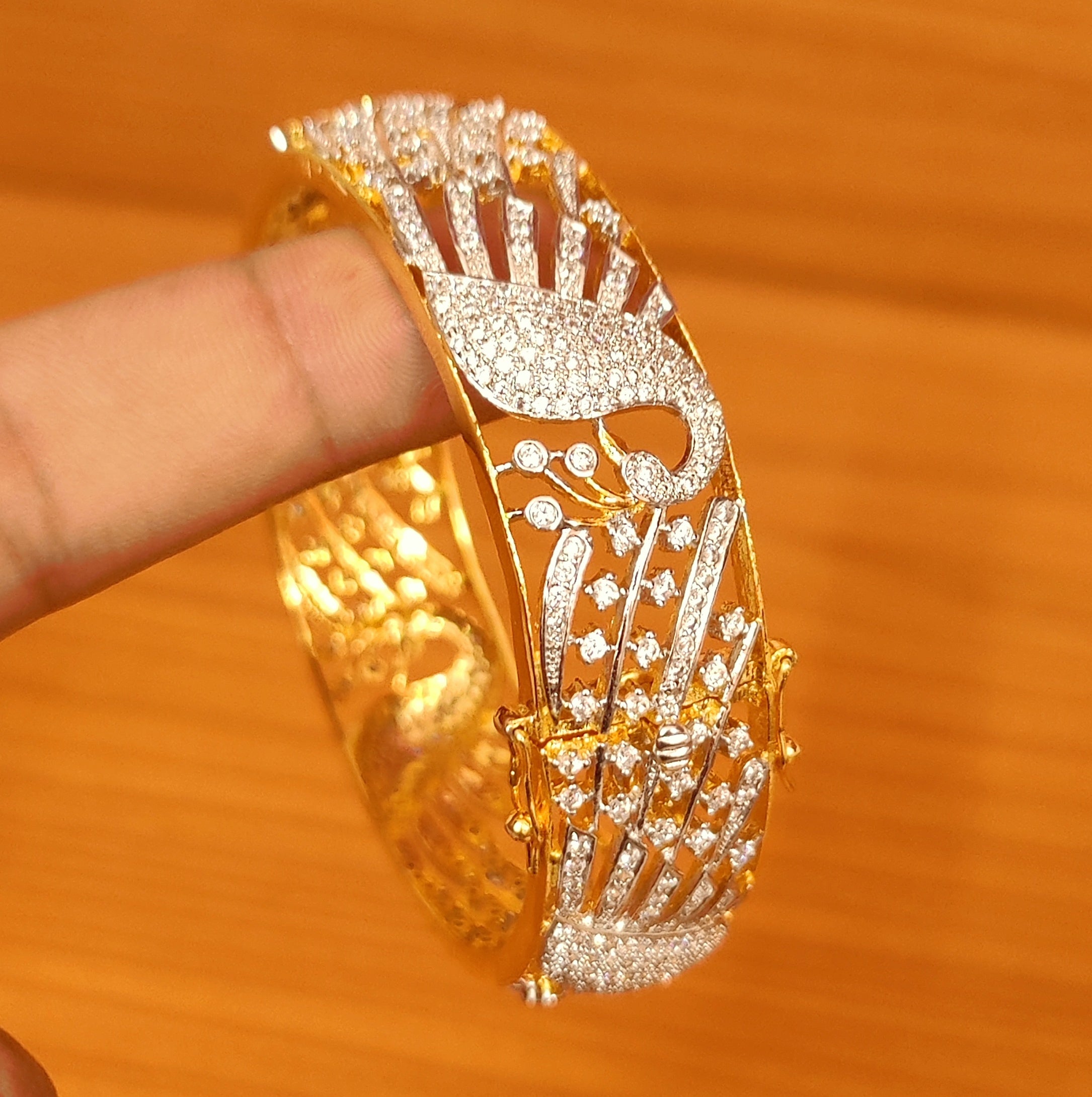 PEACOCK PATTERN CZ STUDDED DIAMOND LOOK OPENABLE KADA