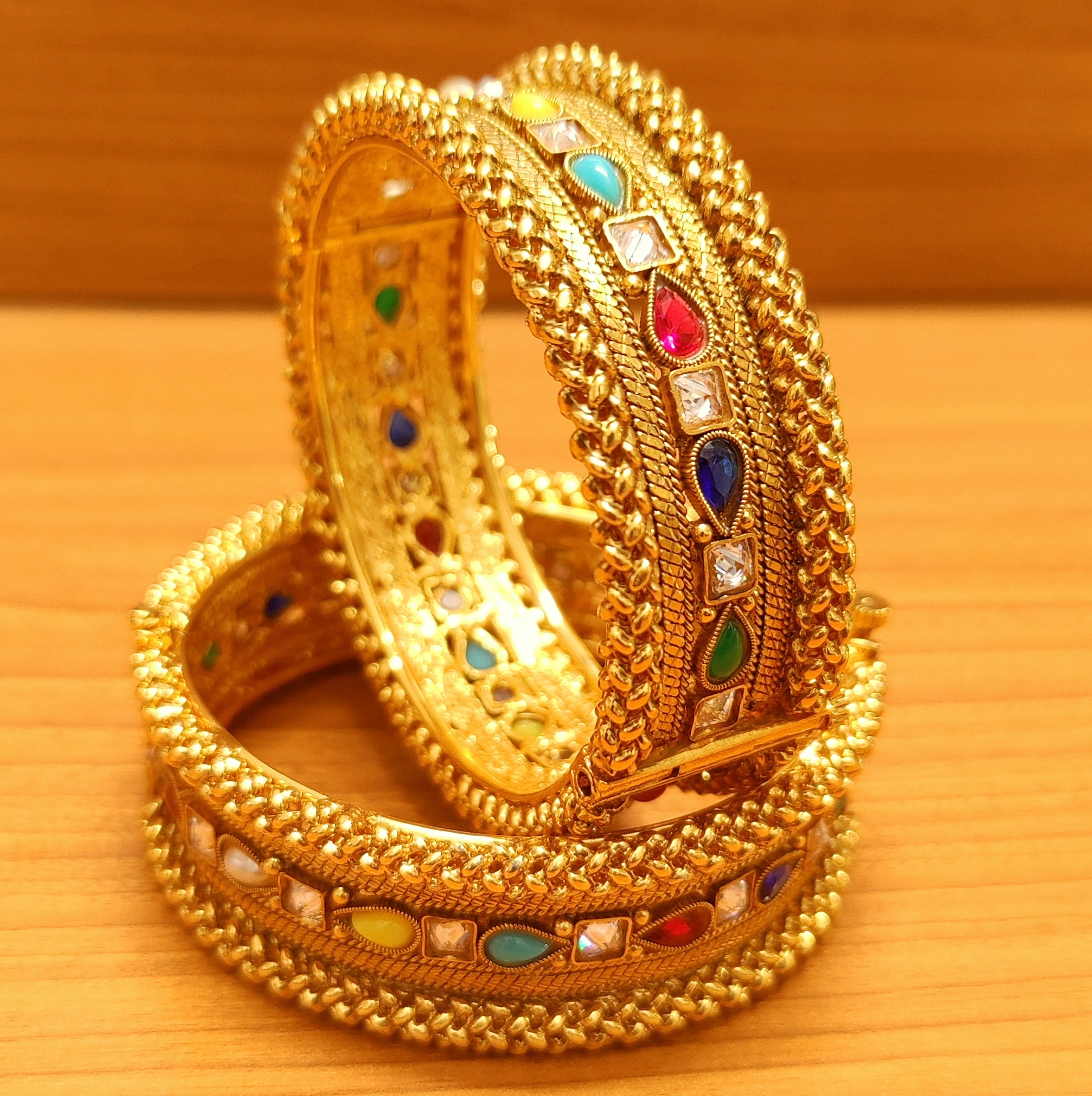 NAVRATAN LOOK GOLD PLATED OPENABLE BANGLES