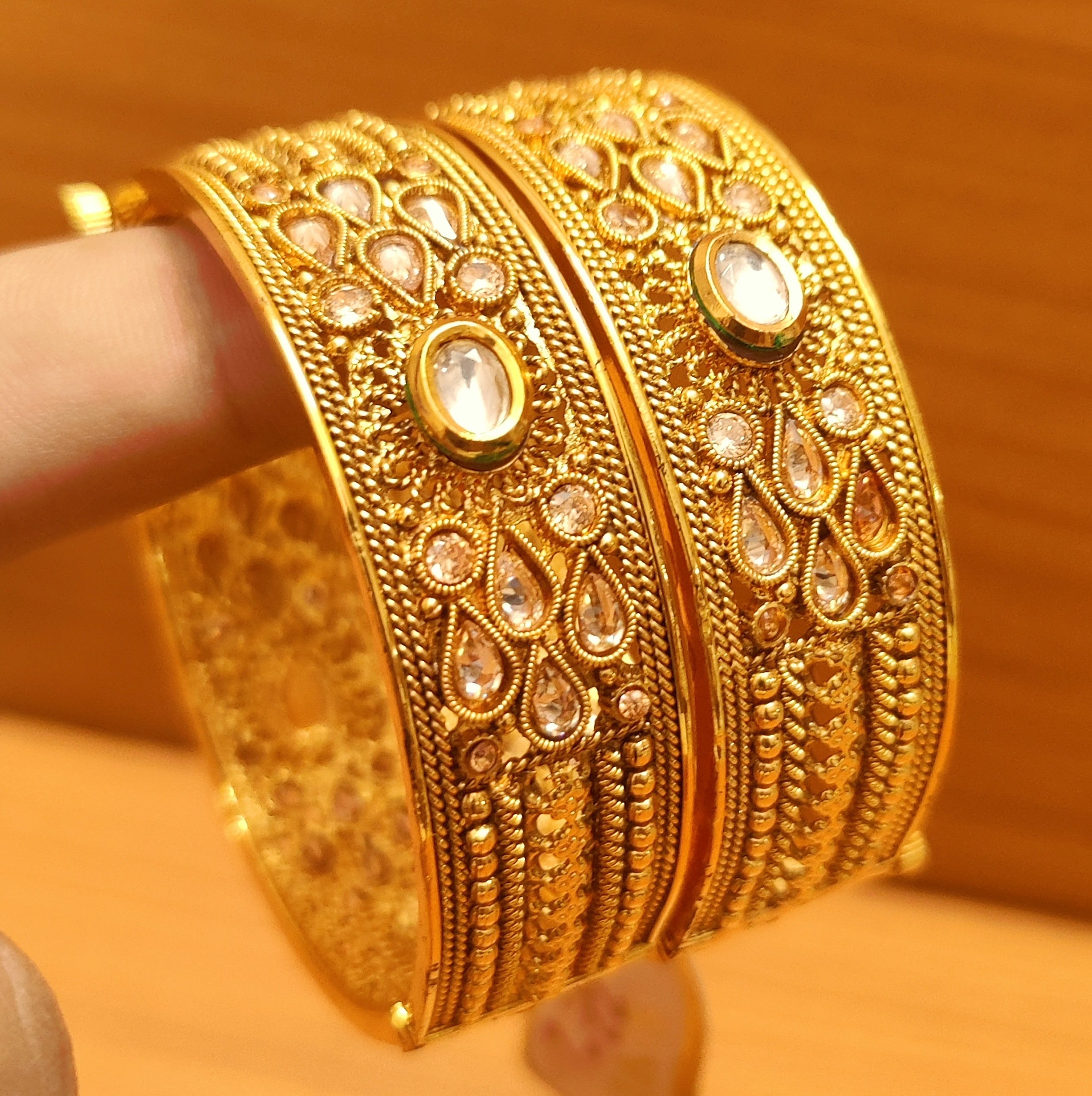 ETHNIC GOLD PLATED CZ STUDDED DIAMOND LOOK BANGLES