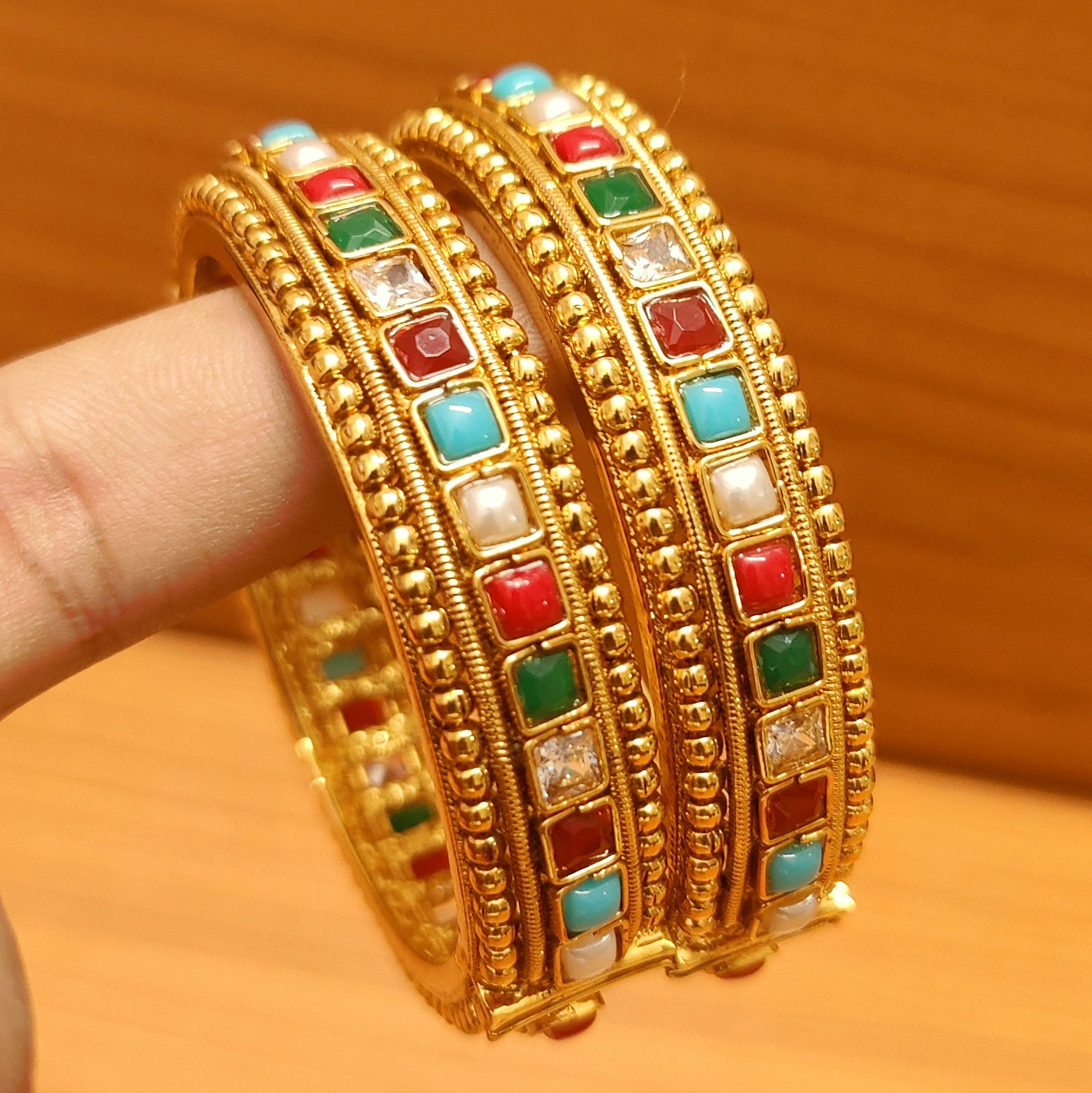 MULTICOLOUR GOLD LOOK ANTIQUE PEARL BANGLES
