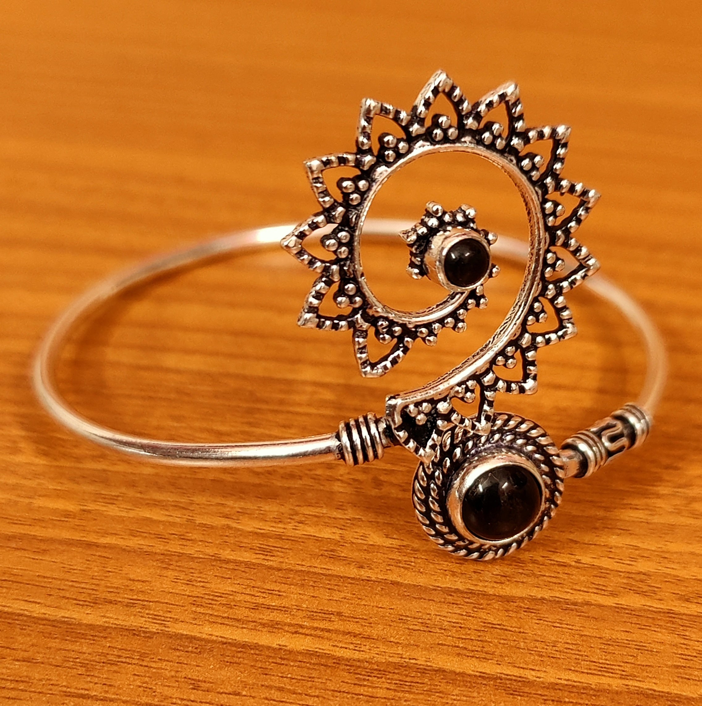 BLACK ONYX SILVER LOOKALIKE ADJUSTABLE BRACELET