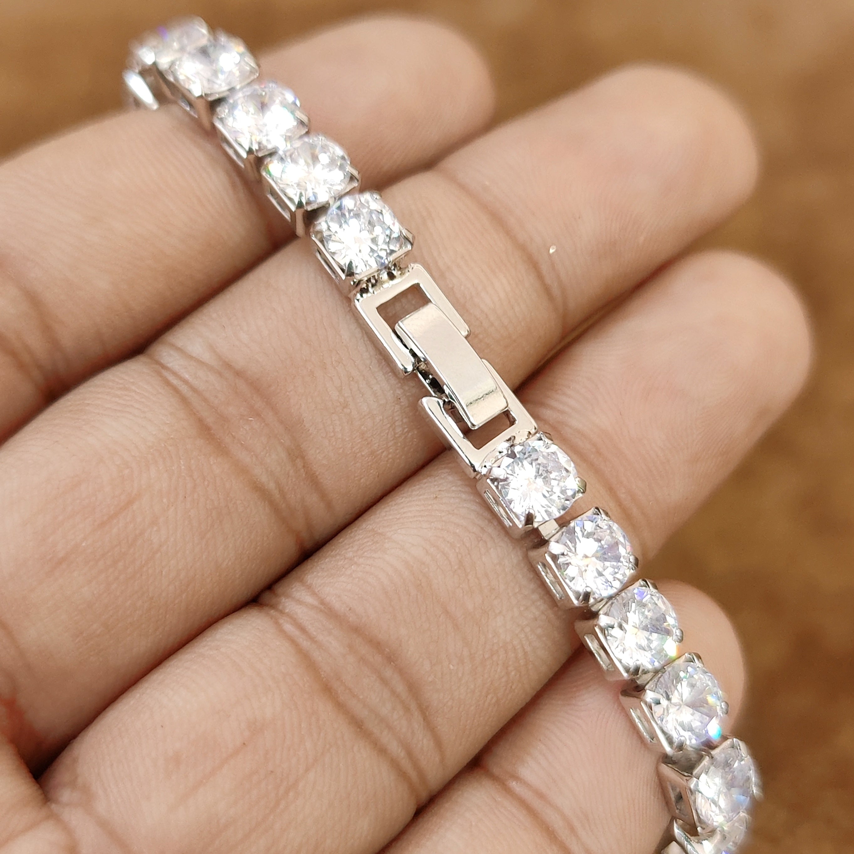 Elevate your elegance with our Single Line Solitaire Look Silver Tennis Bracelet, designed to bring timeless sophistication to your jewelry collection. Crafted with precision, this bracelet features a sleek row of dazzling solitaire-look stones, set in a lustrous silver-plated finish that mimics the brilliance of real diamonds. Its lightweight yet durable design ensures a comfortable fit for daily wear or special occasions. Whether worn solo for a minimalist charm or stacked for a bold statement, this bracelet is a must-have accessory for every modern woman.