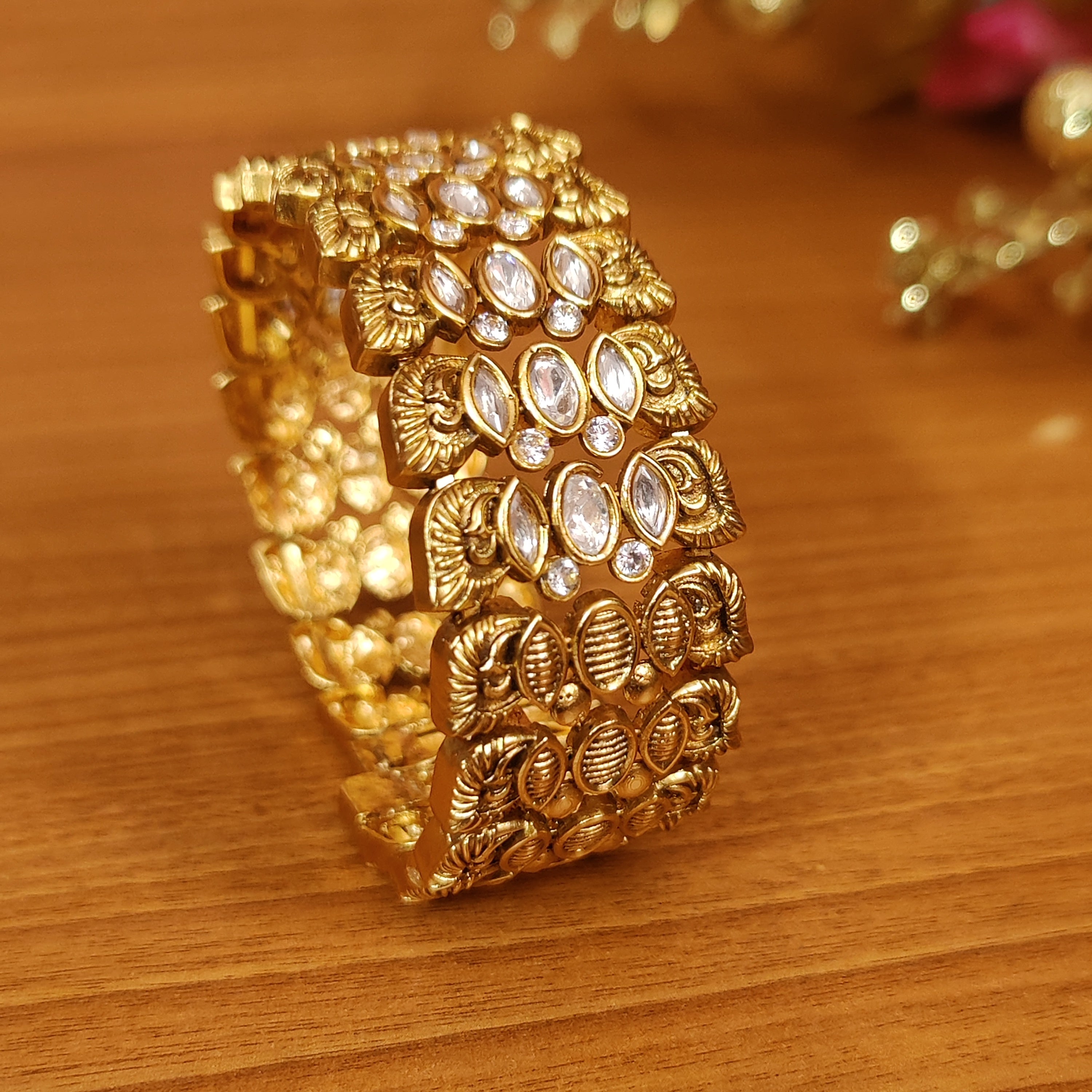 KUNDAN POLKI ANTIQUE GOLD LOOK OPENABLE BRACELET