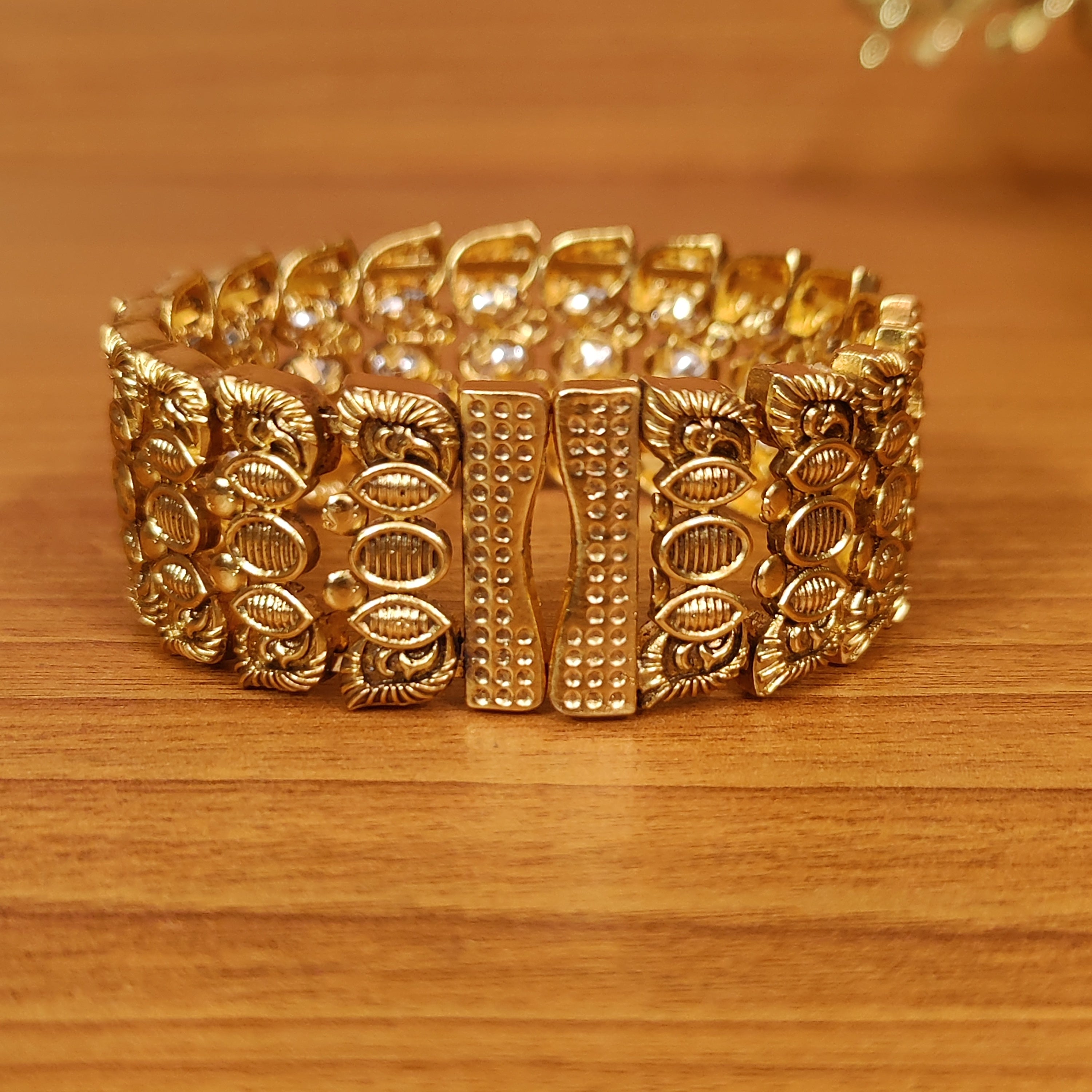 NAVRATAN LOOK GOLD PLATED CZ STUDDED BRACELET