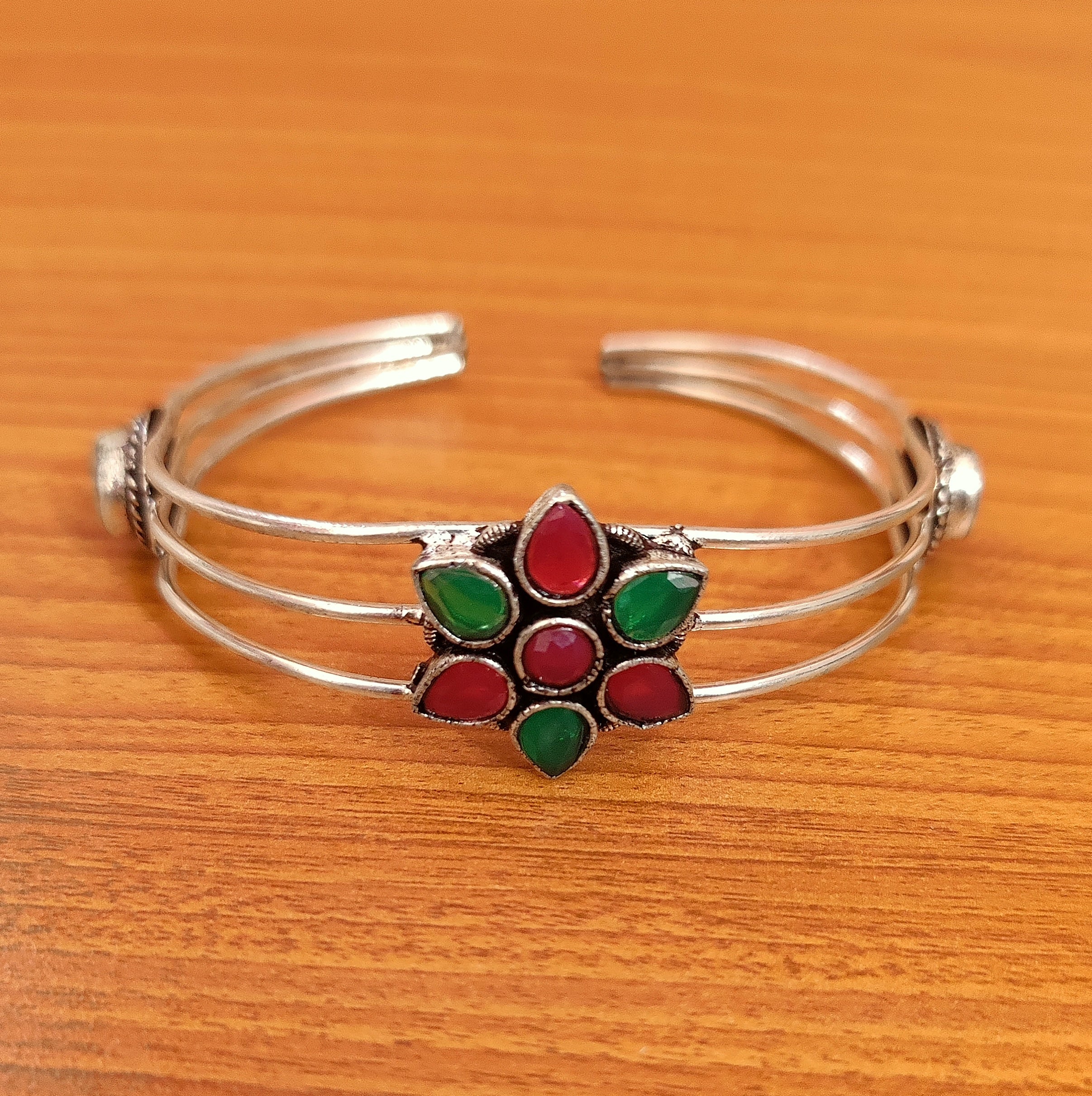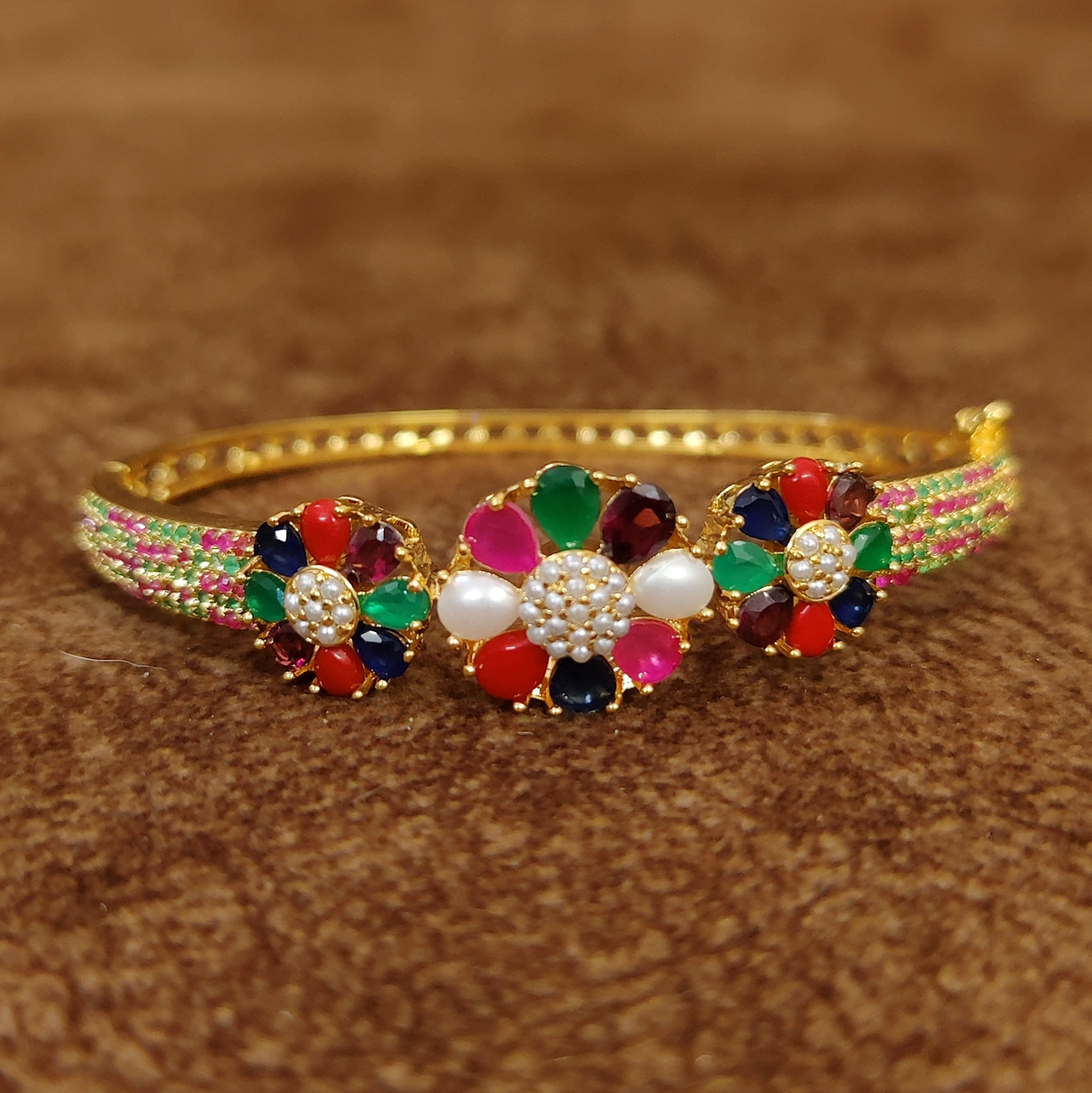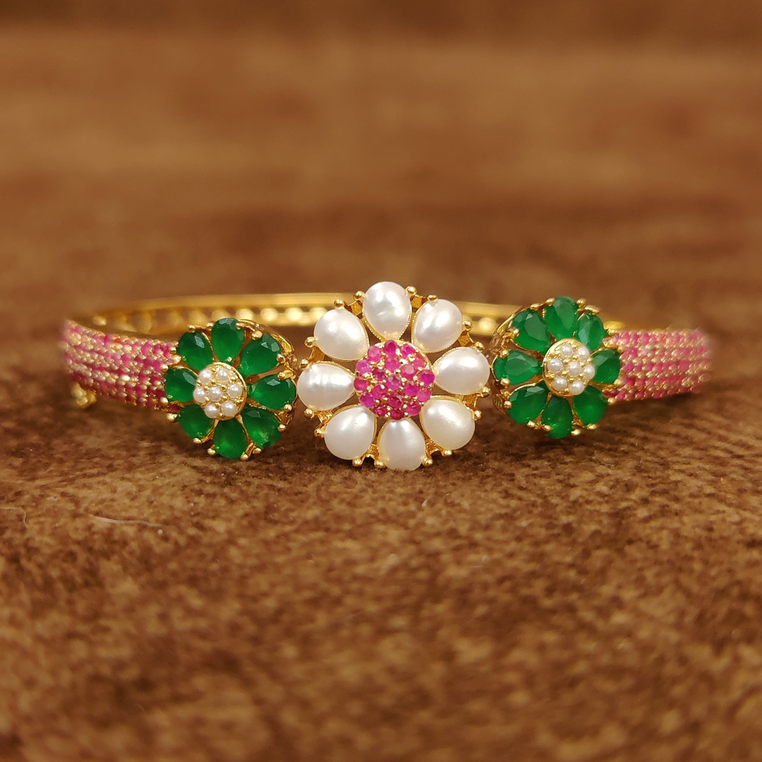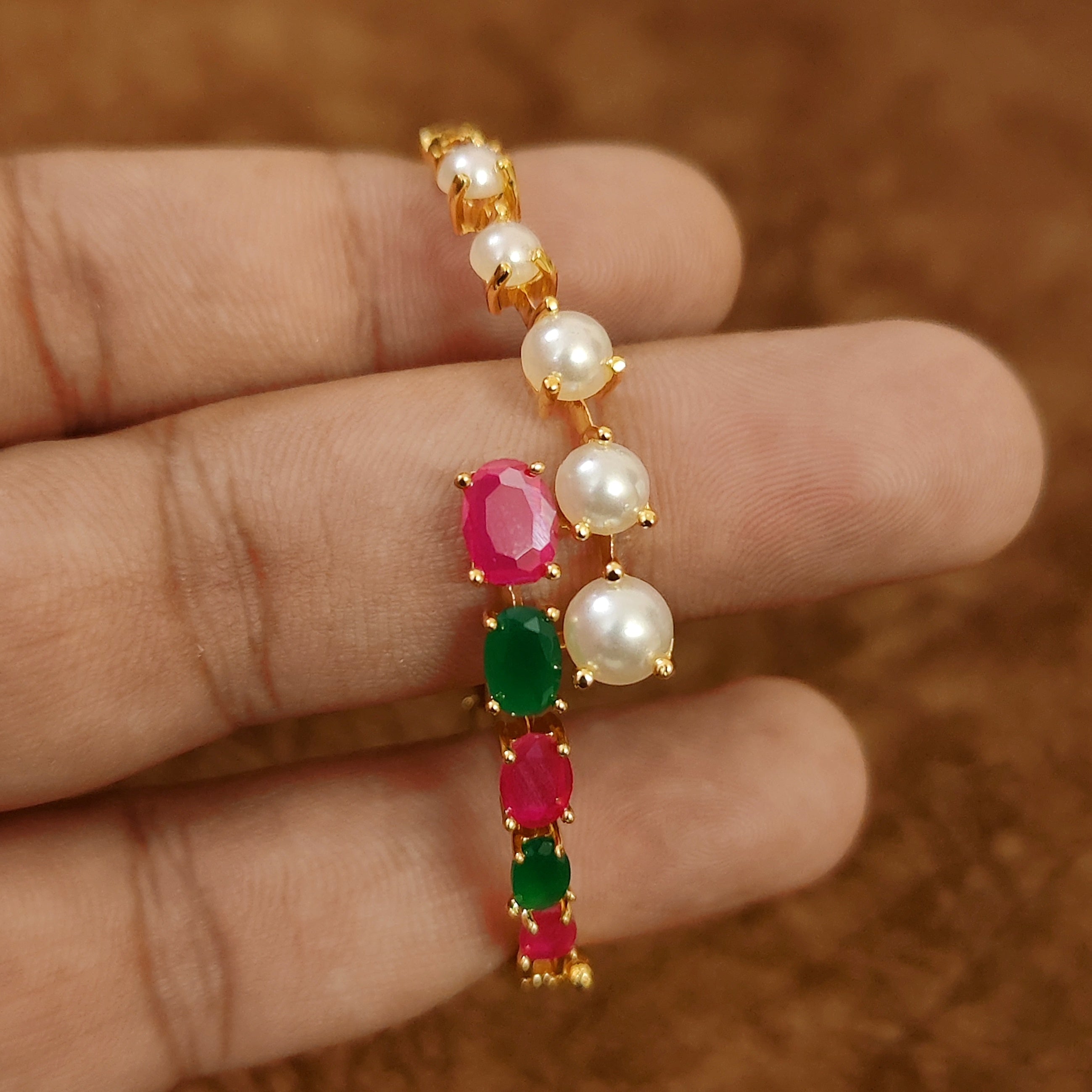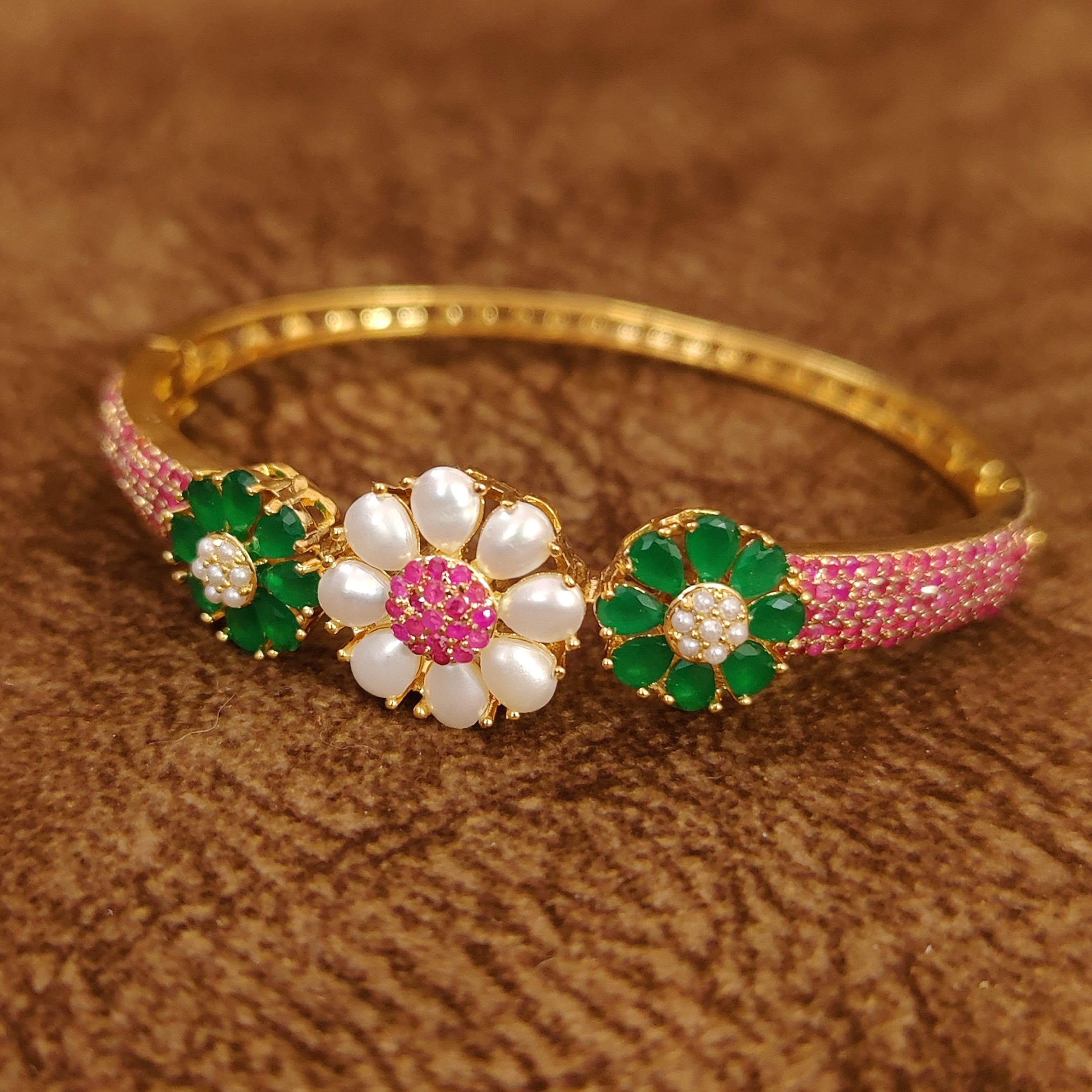 RUBY EMERALD & PEARL STUDDED OPENABLE BRACELET