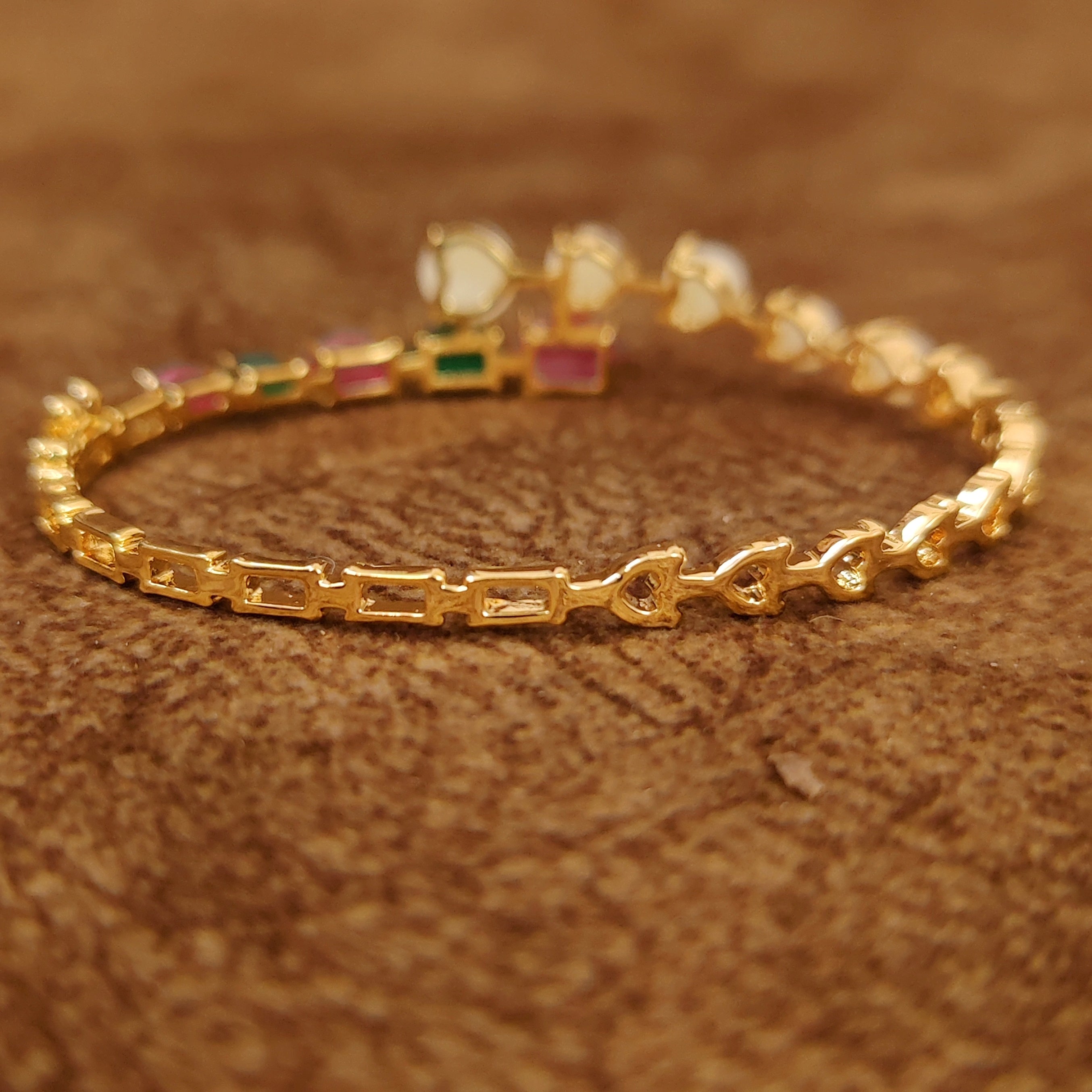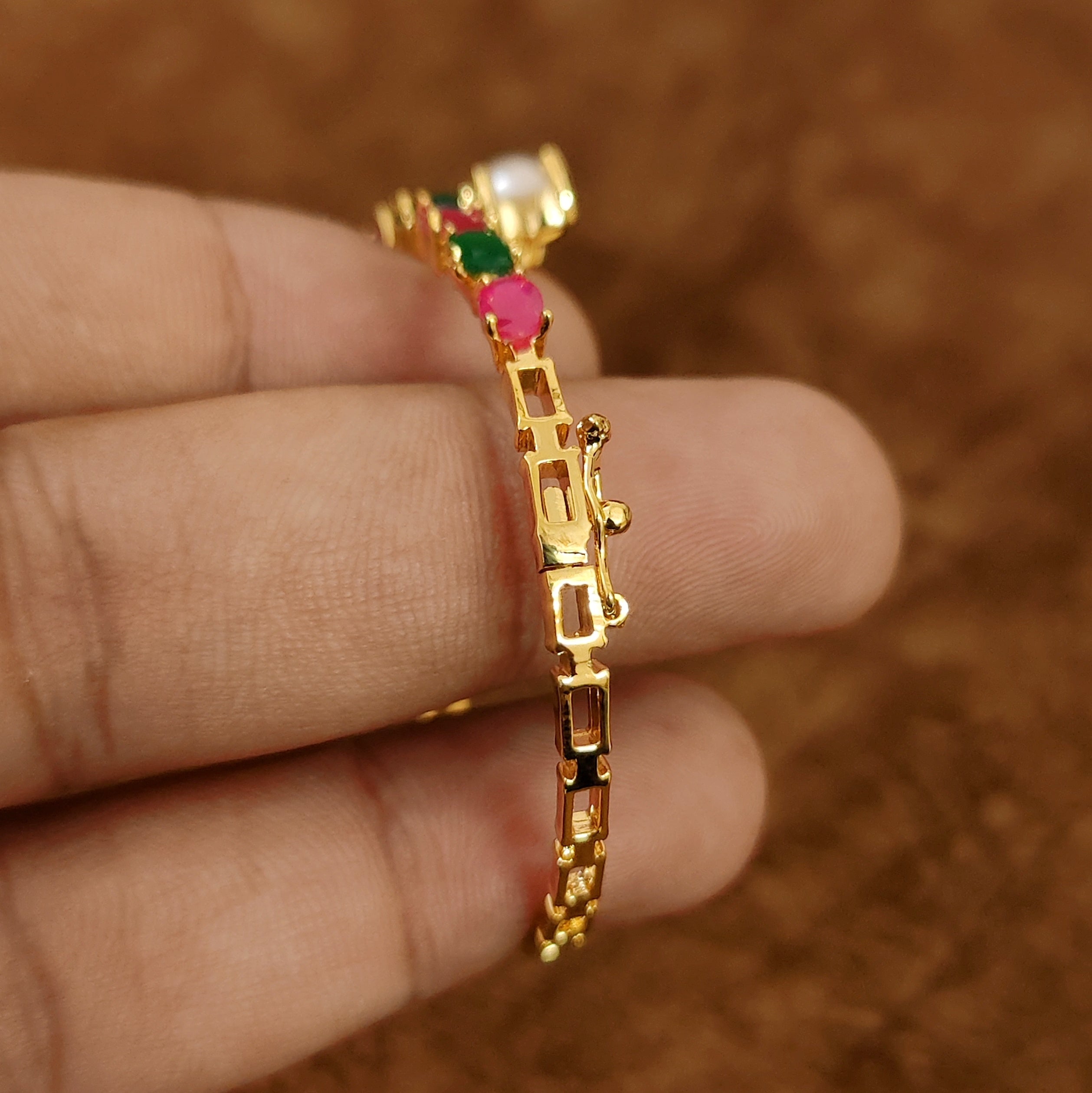 RUBY EMERALD & PEARL STUDDED GOLD PLATED BRACELET