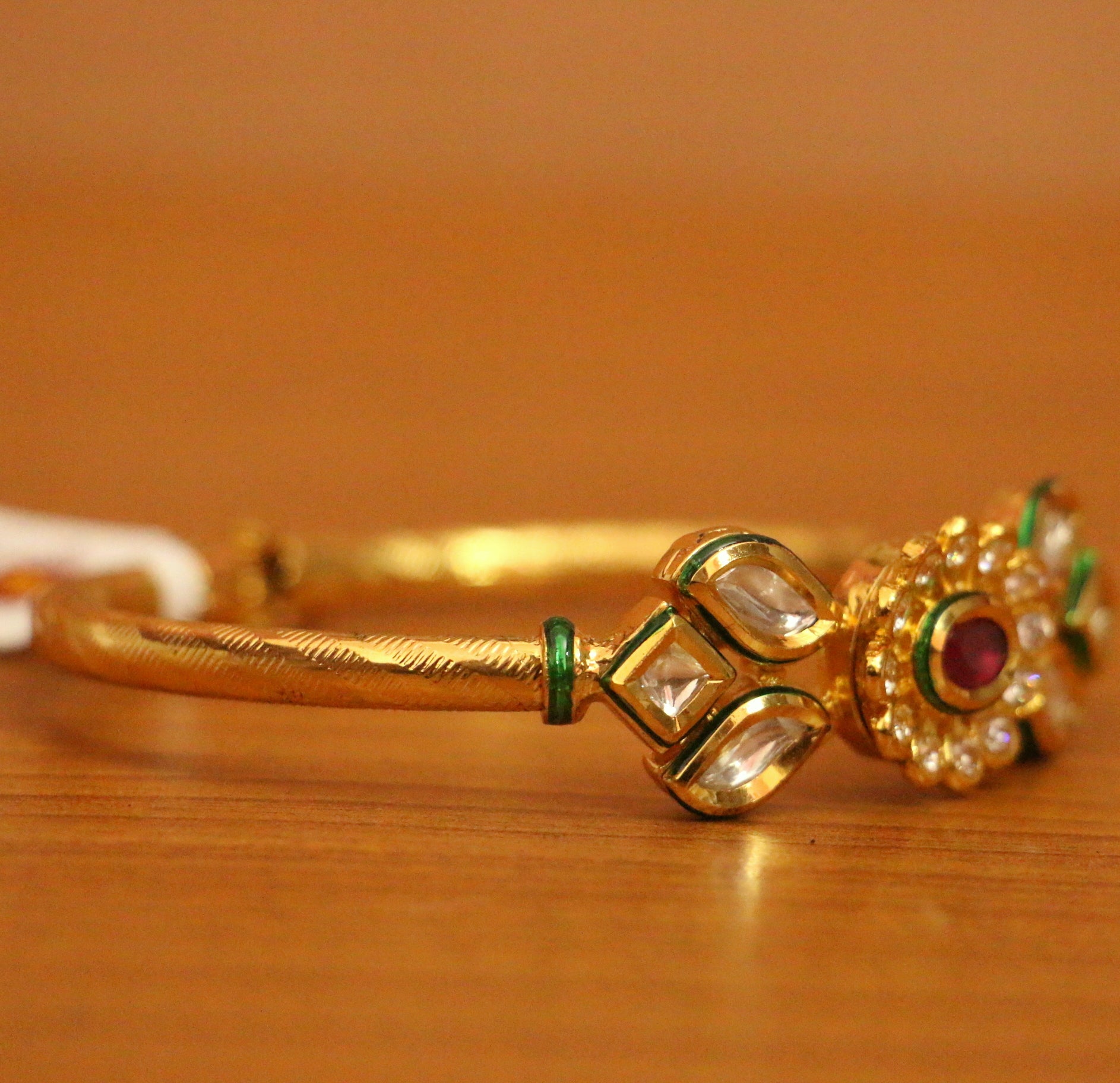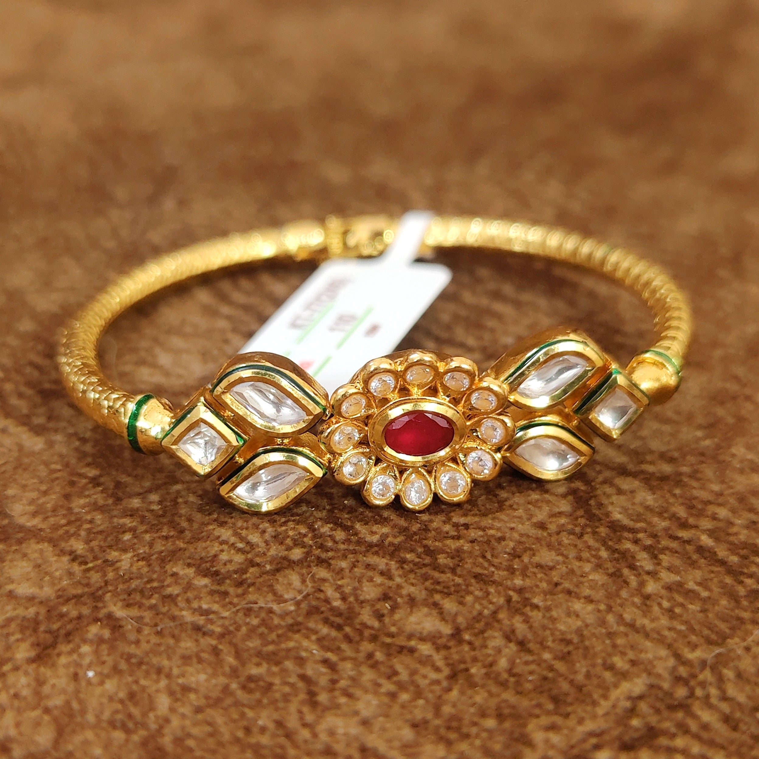 RUBY KUNDAN POLKI GOLD PLATED OPENABLE KADA