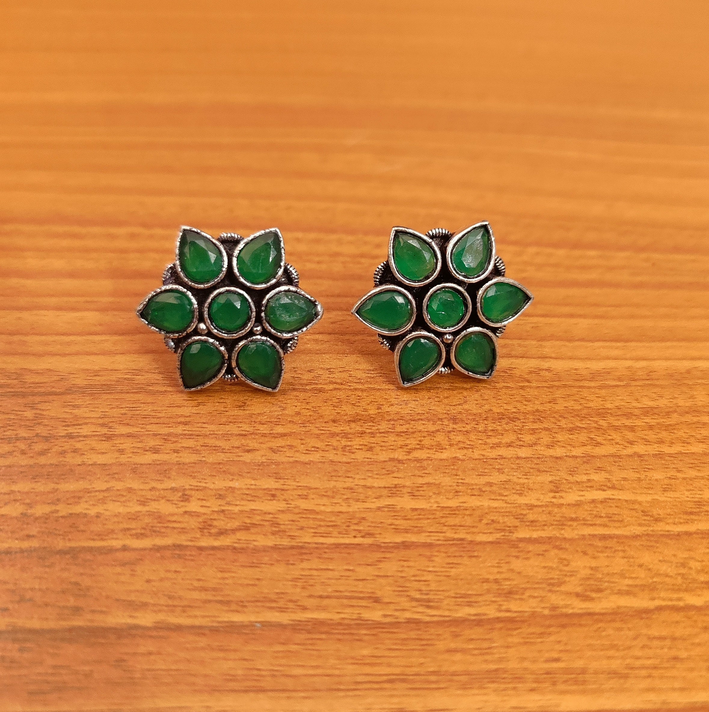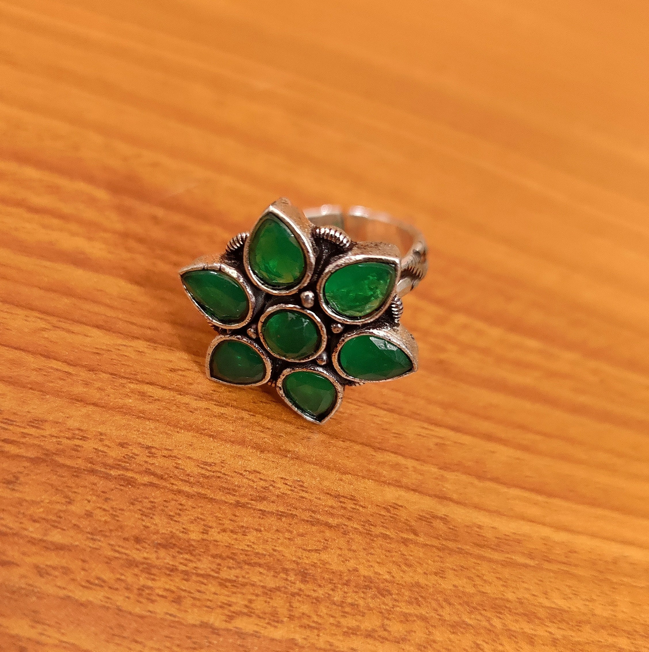 GREEN COLOUR GERMAN SILVER BRACELET EARRINGS & RING SET