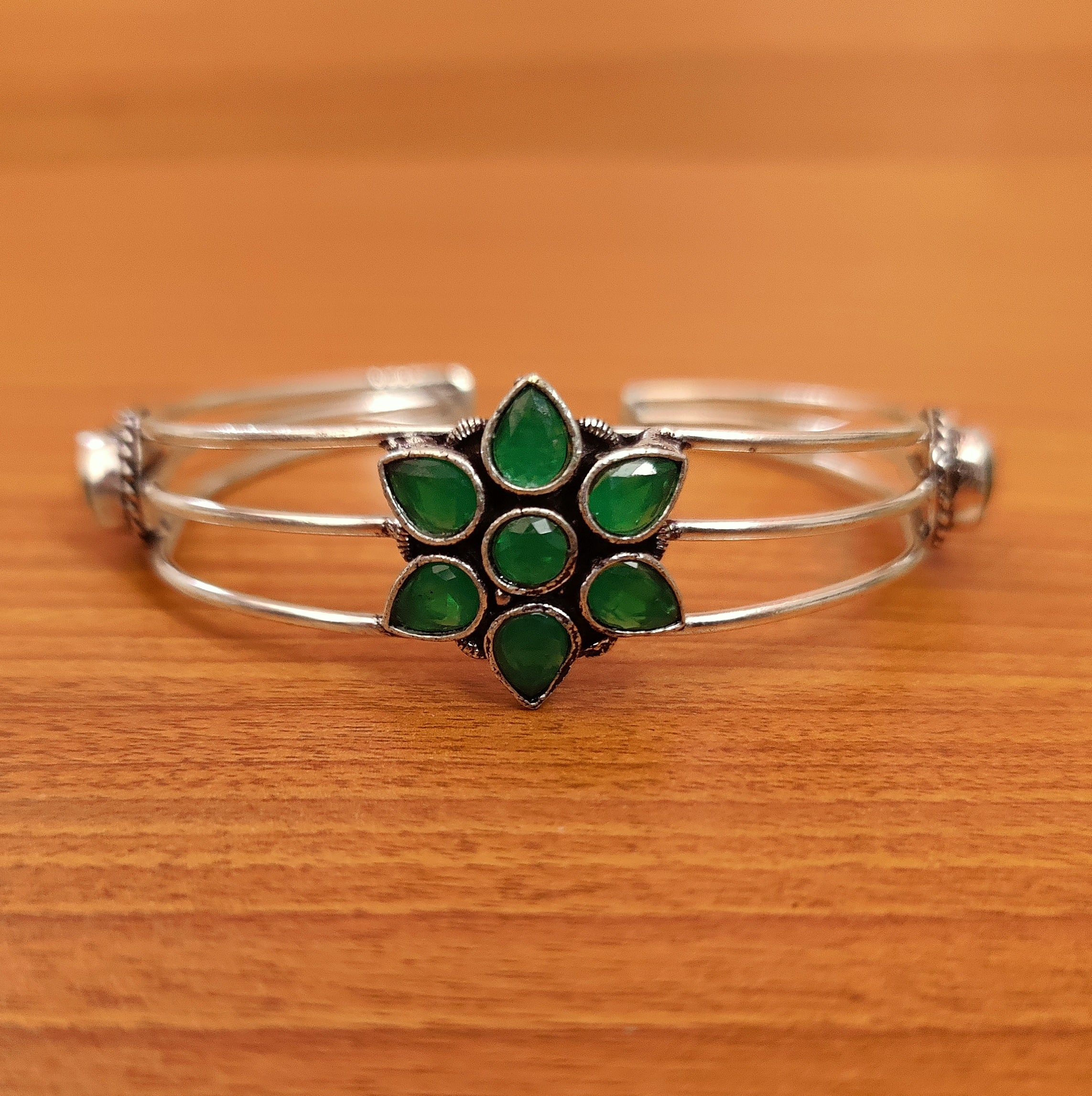 GREEN ONYX DIAMOND LOOK CZ STUDDED BROAD OPENABLE BRACELET