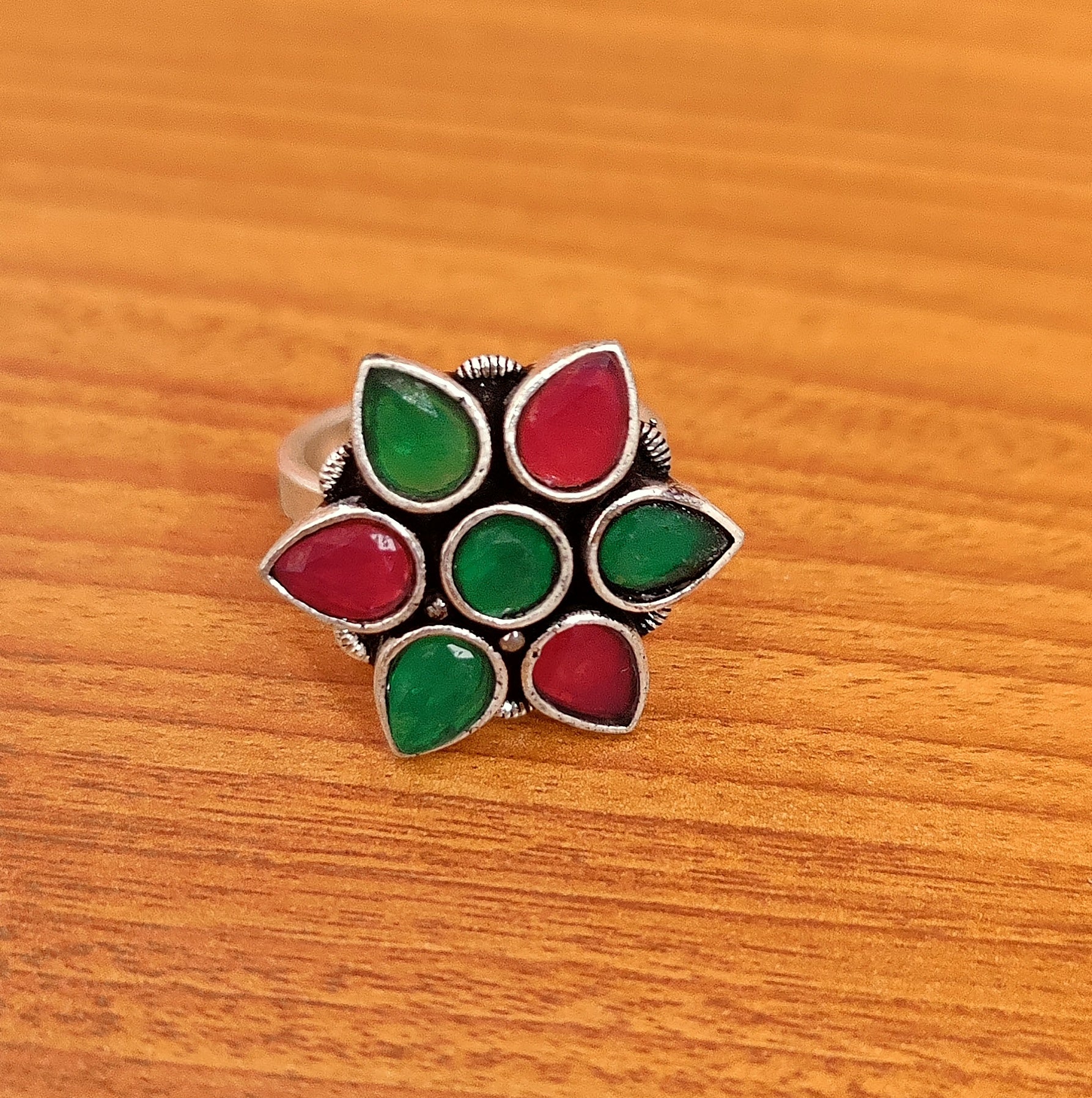 MULTICOLOUR GERMAN SILVER BRACELET EARRINGS & RING SET