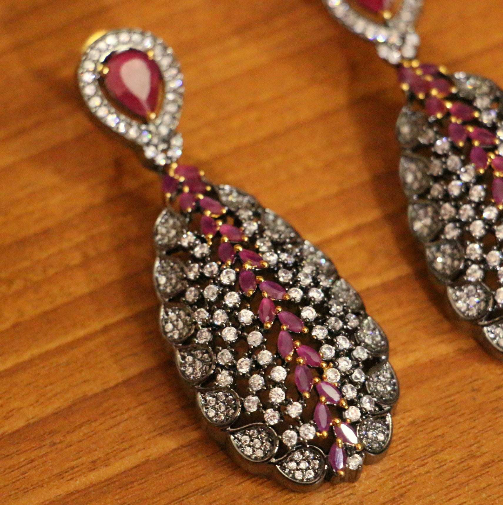 These earrings are handcrafted in silver alloy with imitation yellow citrine & american diamond work of very fine quality. These artistic yet modern earrings are plated with high quality black silver rhodium. The earrings are very light in weight.