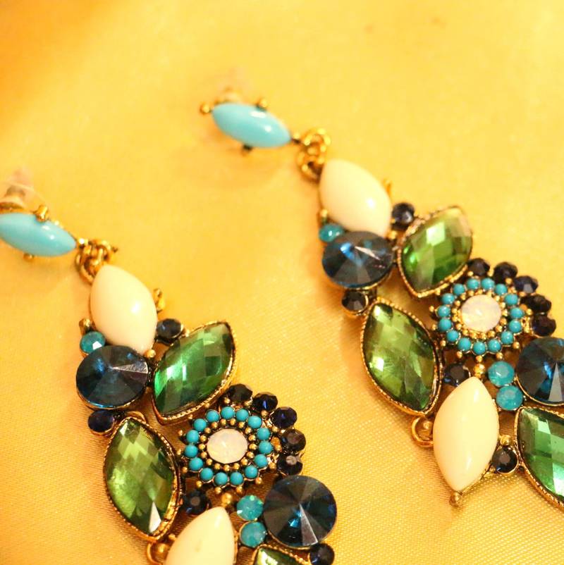 These beautiful earrings are handcrafted in brass alloy with imitation multi gemstone and semi precious american daimonds work of very fine quality. These earrings are coated with 18 kt gold polish which give them a unique look . An absolutely stunning piece to own and are very light in weight.