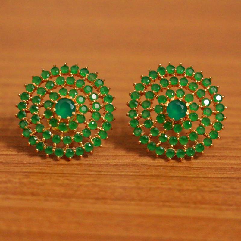 Green American Diamonds Onyx Yellow Gold Danglers Drops