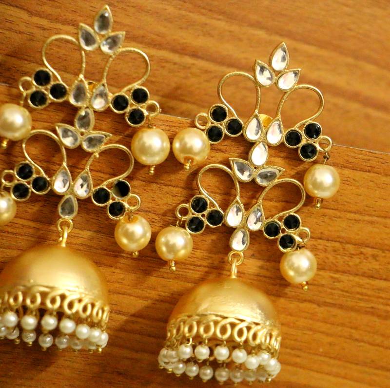 These beautiful earrings are handcrafted in brass alloy with imitation pearls & kundan with matt finishing work of very fine quality. These earrings are coated with 18 kt yellow gold polish which give them a unique look . An absolutely stunning piece to own and are very light in weight.