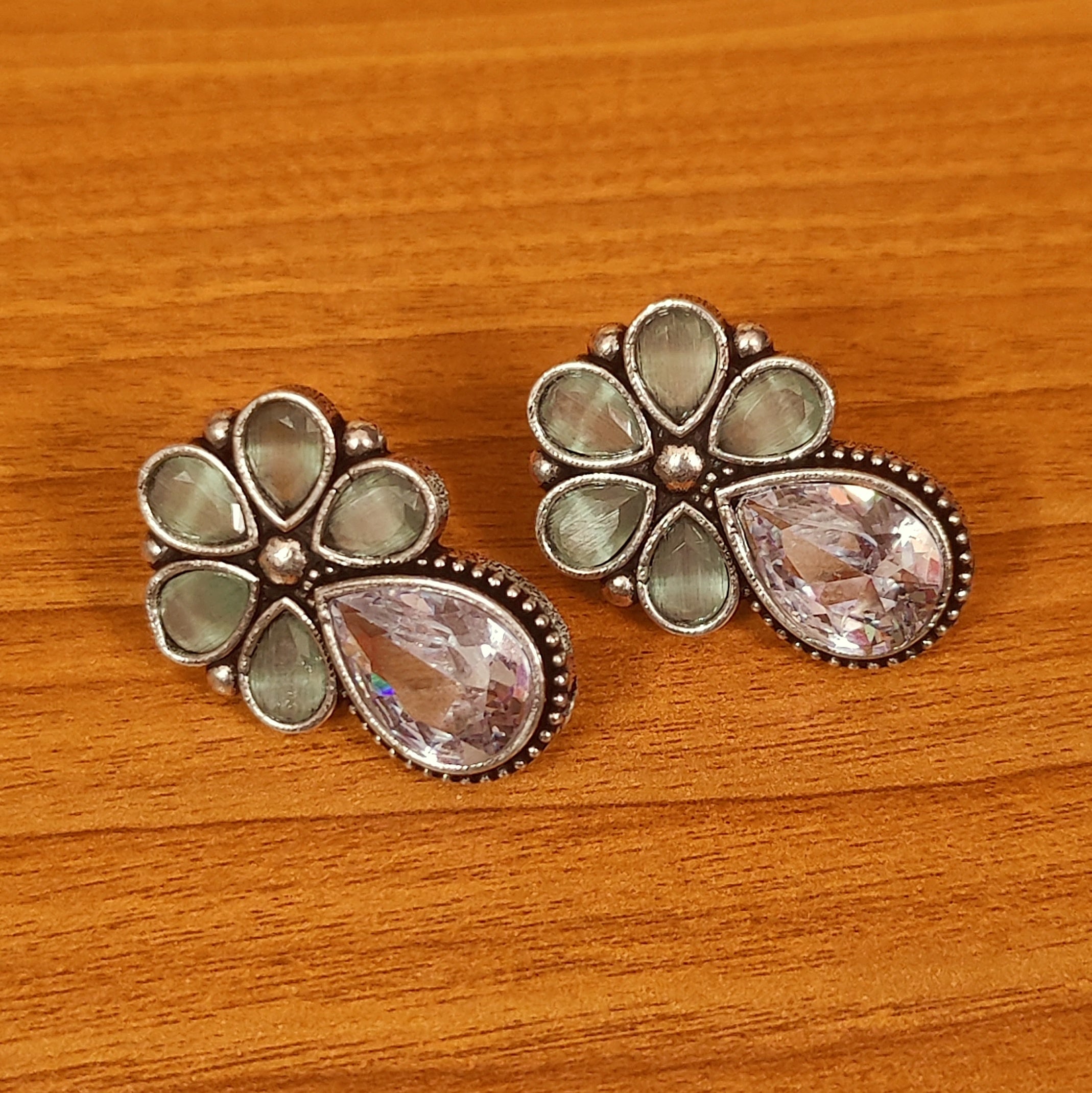 MINT QUARTZ & CZ STUDDED GERMAN SILVER STUDS
