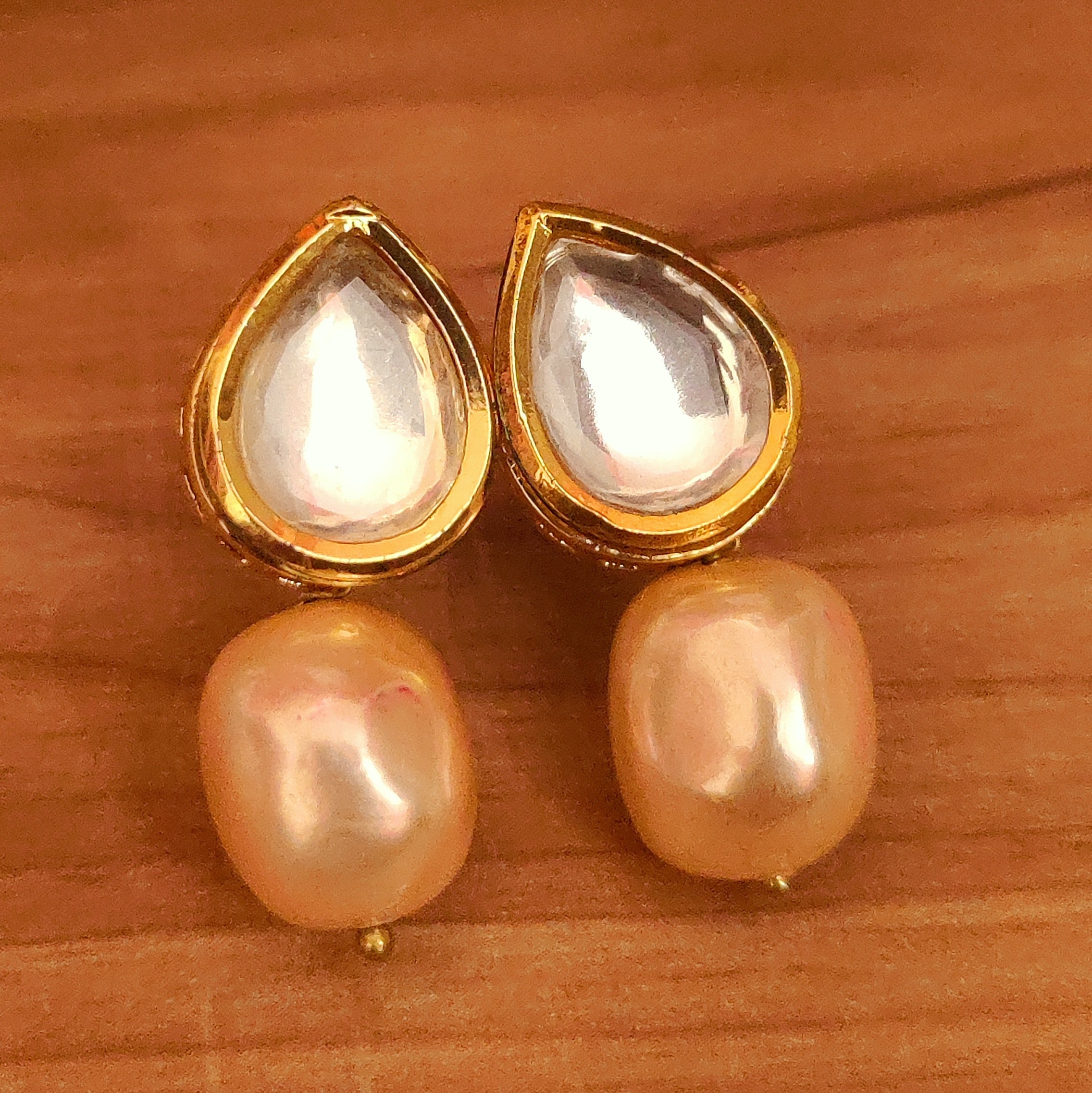 PEAR SHAPED KUNDAN BEIGE PEARL BIG STUDS