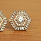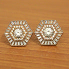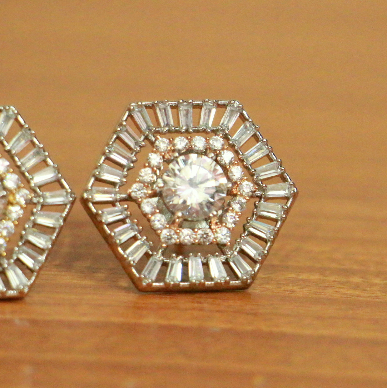 These diamond look studs are handcrafted in silver alloy with imitation cz stones of very fine quality. These earrings are plated in white gold rhodium plating which gives the design a real jewelry look .