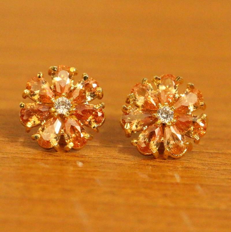 Champagne Colour Flower Pattern Gold Plated Earrings