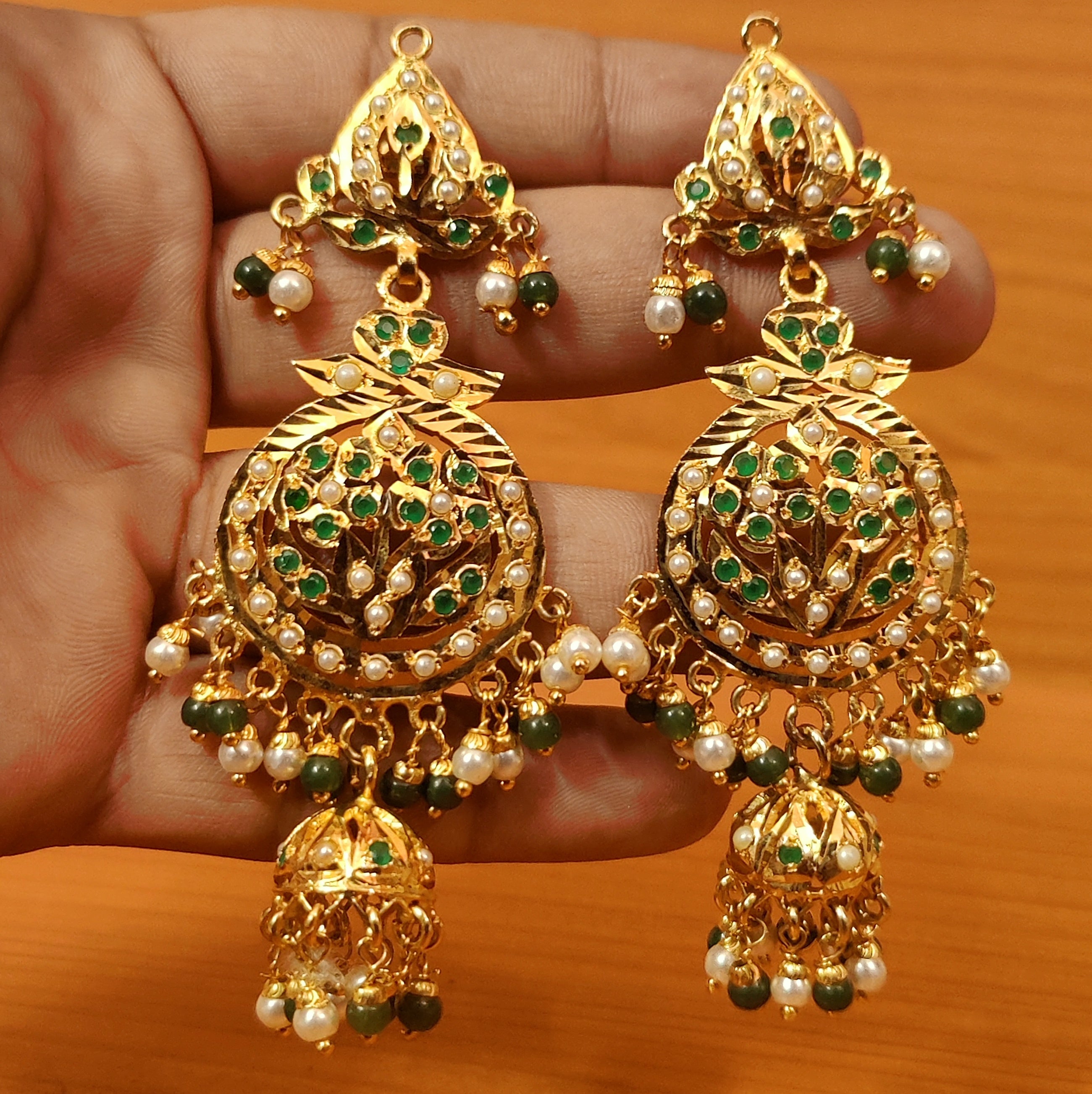 GOLD LOOK EMAERALD & PEARL JADAU EARRINGS