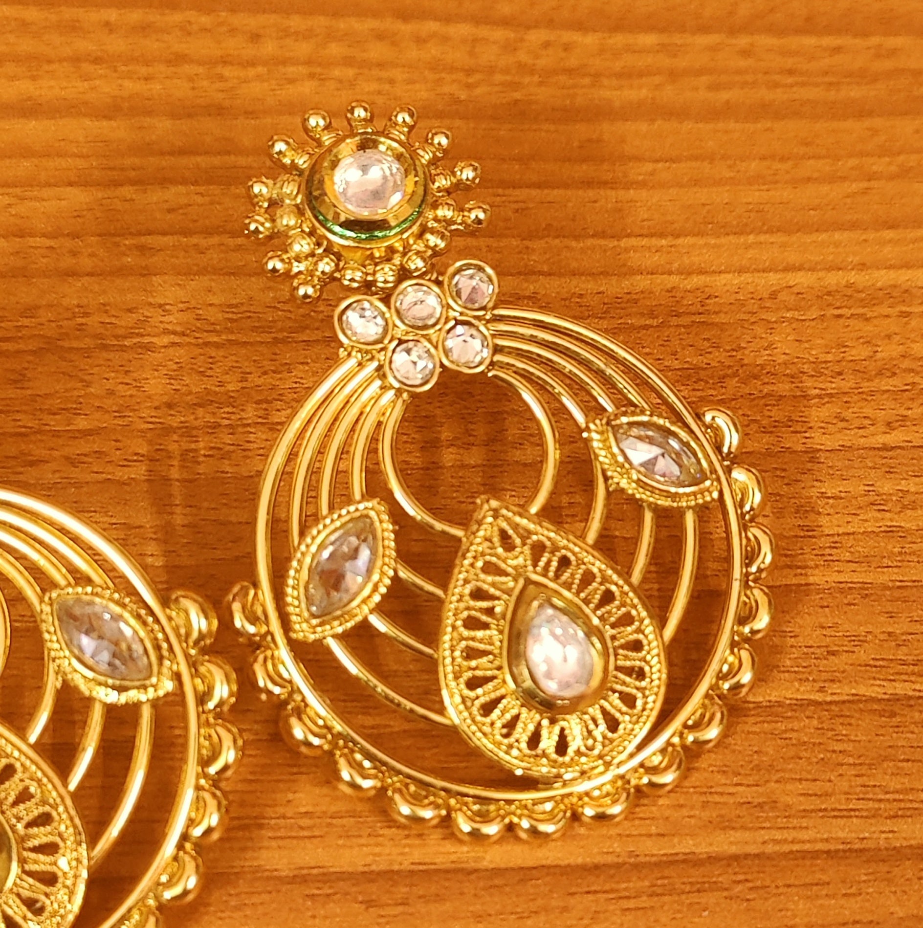 GOLD PLATED KUNDAN LOOK POLKI CHANDBALI EARRINGS