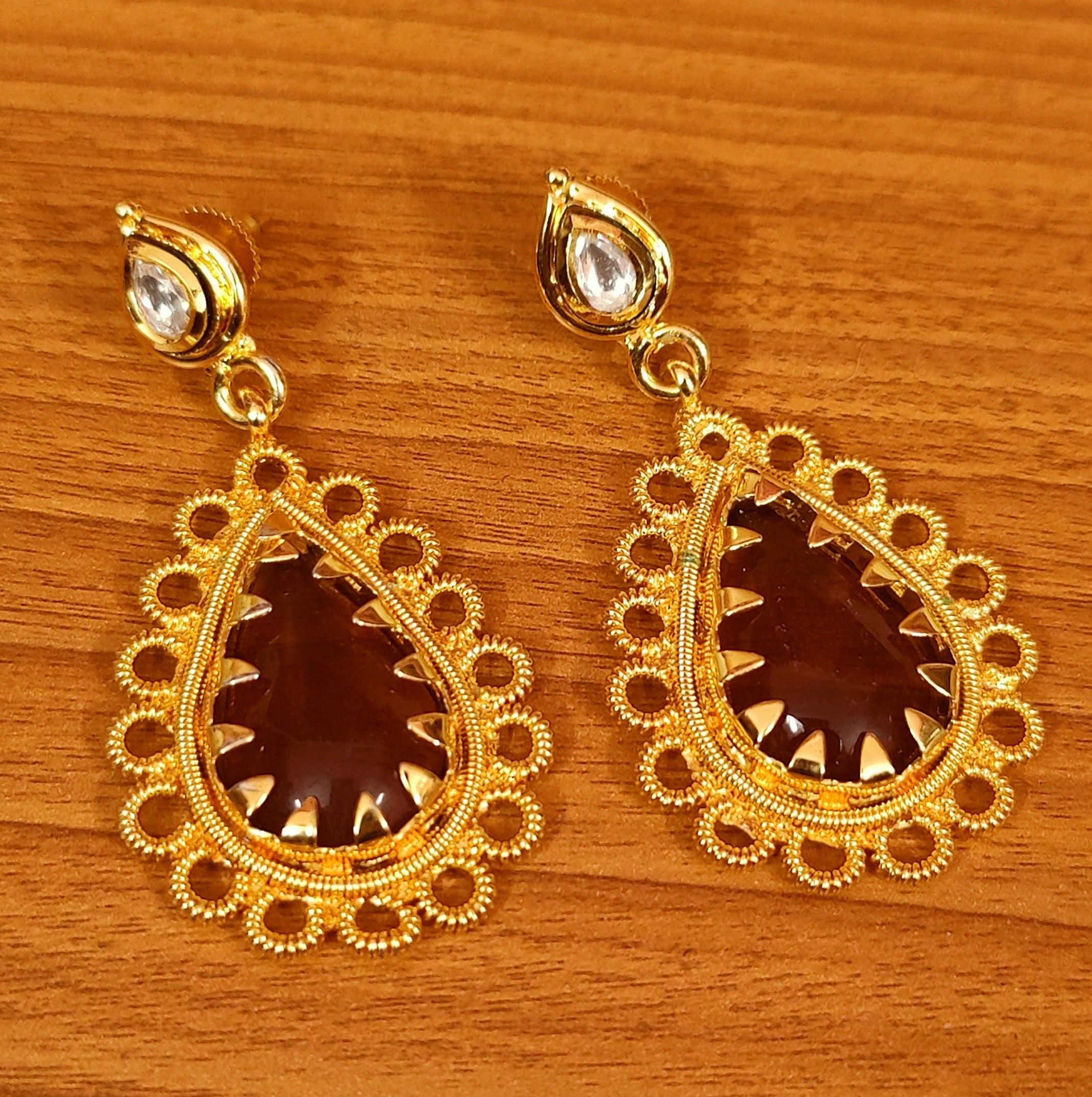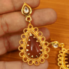 KUNDAN LOOK GOLD PLATED PEAR SHAPED WINE EARRINGS
