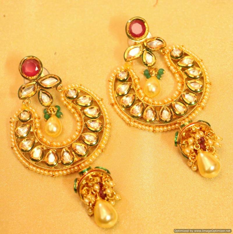 These beautiful earrings are handcrafted in brass alloy with imitation kundan with meenakari work of very fine quality. These earrings are coated with 18 kt gold polish which give them a unique look . An absolutely stunning piece to own and are very light in weight.