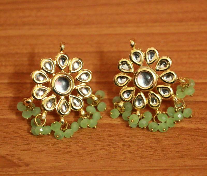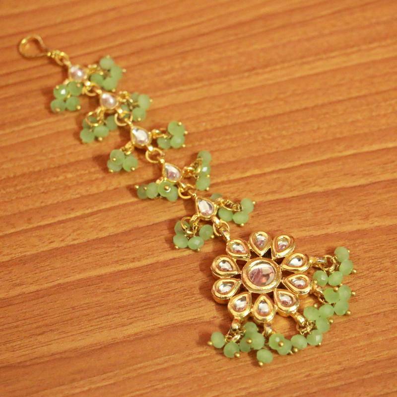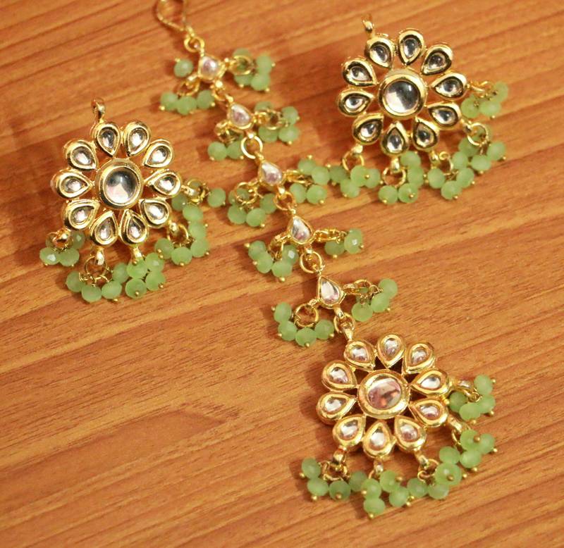 Light Green Crystal Kundan Meenakari Tikka With Earrings