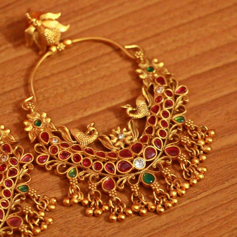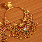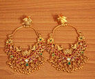 These earrings are handcrafted in copper alloy with imitation ruby & green onyx work of very fine quality. These artistic yet modern earrings are plated with high quality 18kt gold. The earrings are very light in weight.