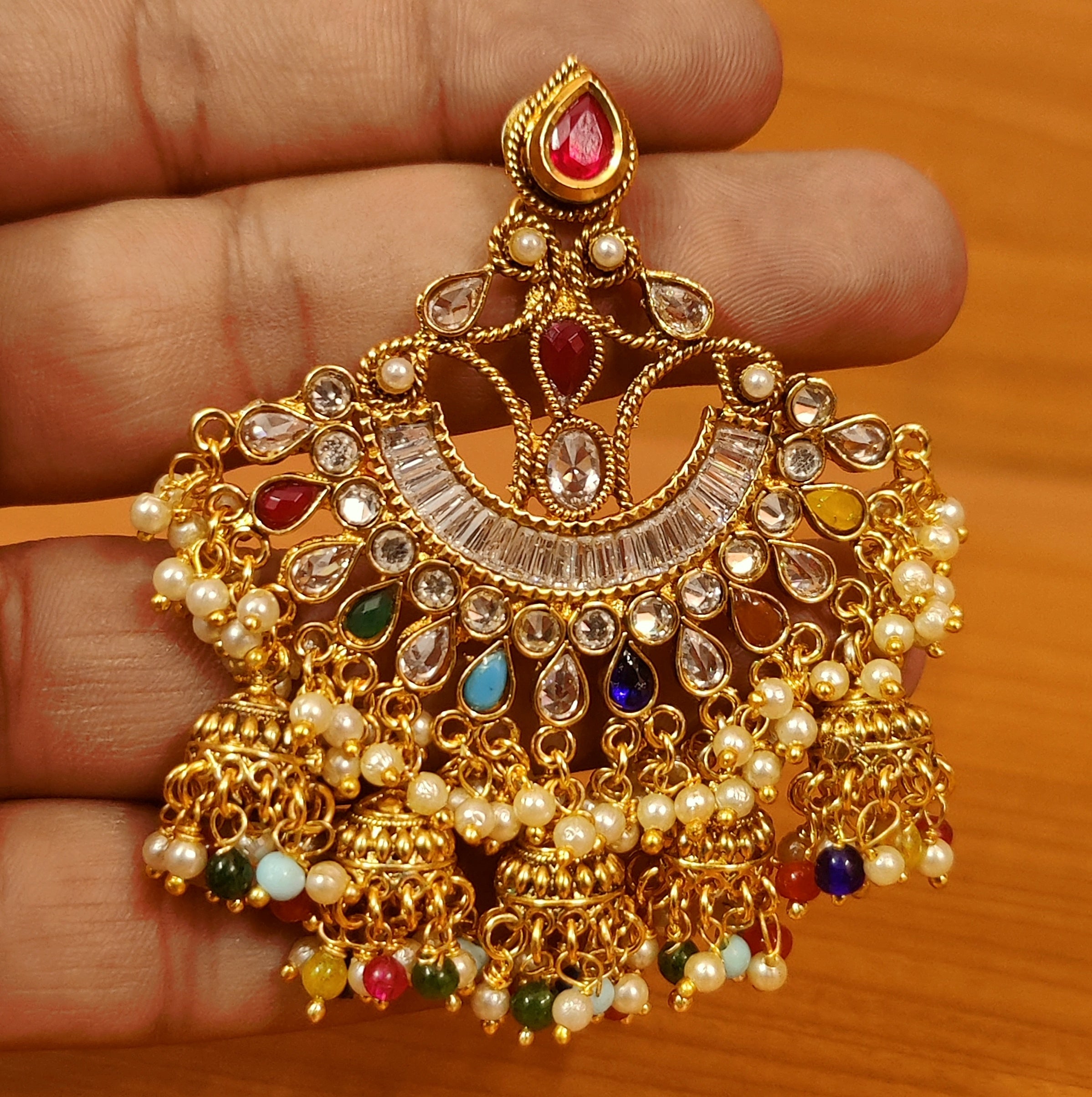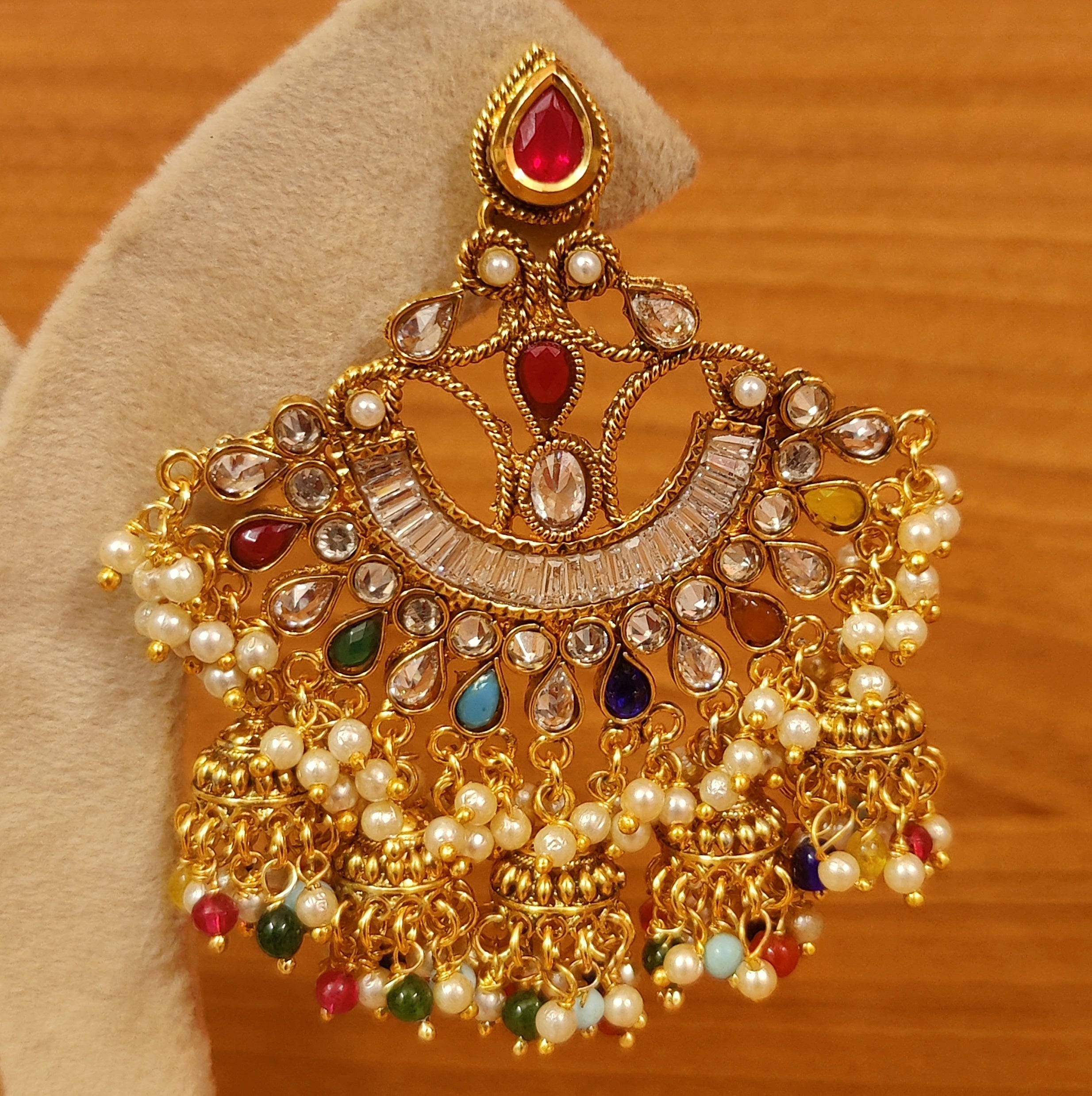 MULTICOLOUR CZ POLKI STUDDED CHAANDBAALI