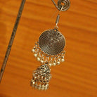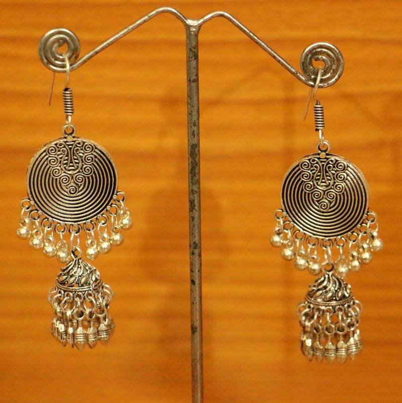 These beautiful earrings are handcrafted in copper alloy . These earrings are coated with oxidised silver polish which give them a unique look . An absolutely stunning piece to own and are very light in weight.