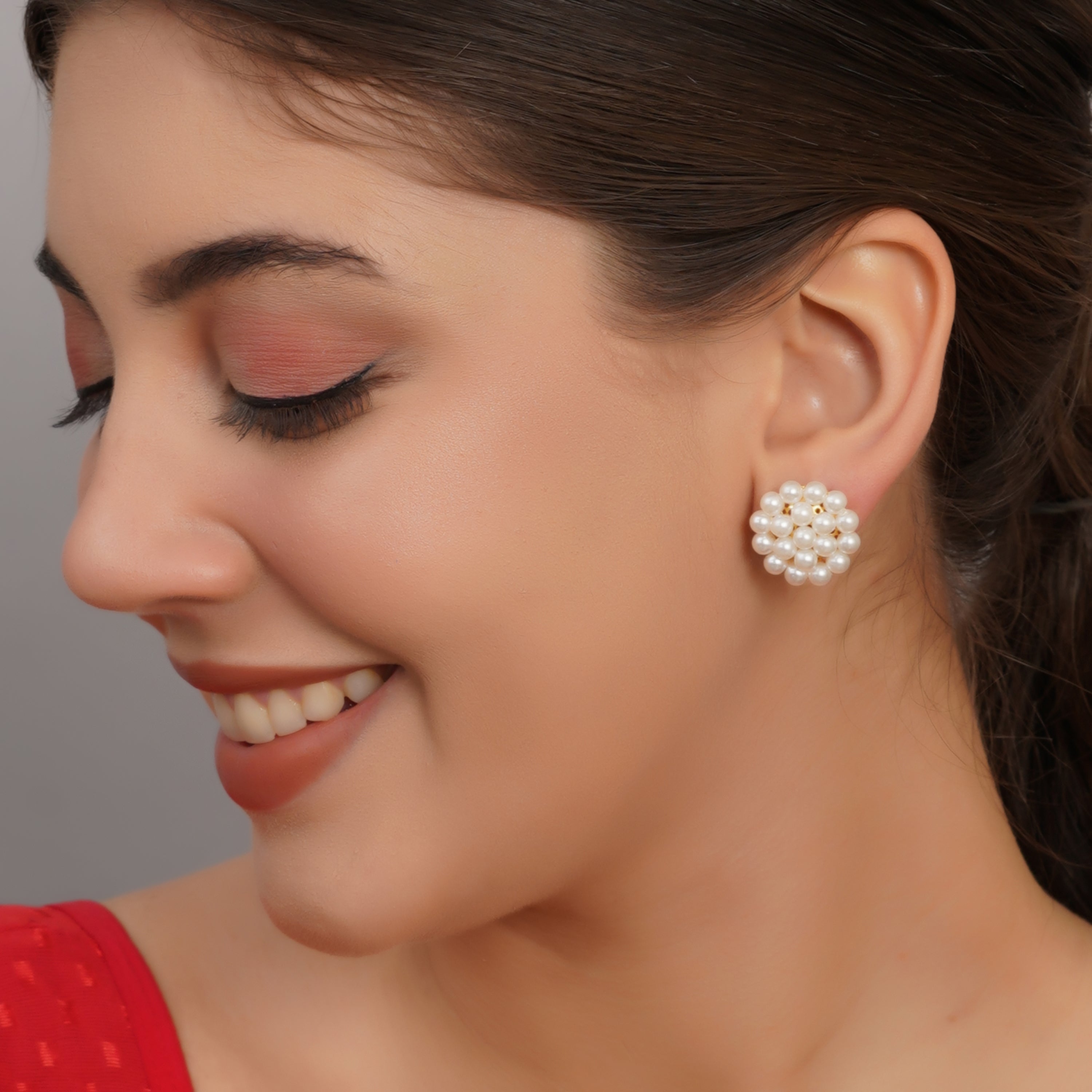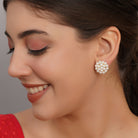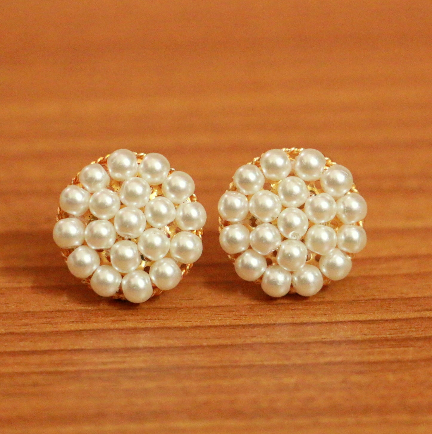 These earrings are handcrafted in brass alloy with imitation pearls & polki work of very fine quality. These artistic yet modern earrings are plated with high quality 18kt gold. The earrings are very light in weight.