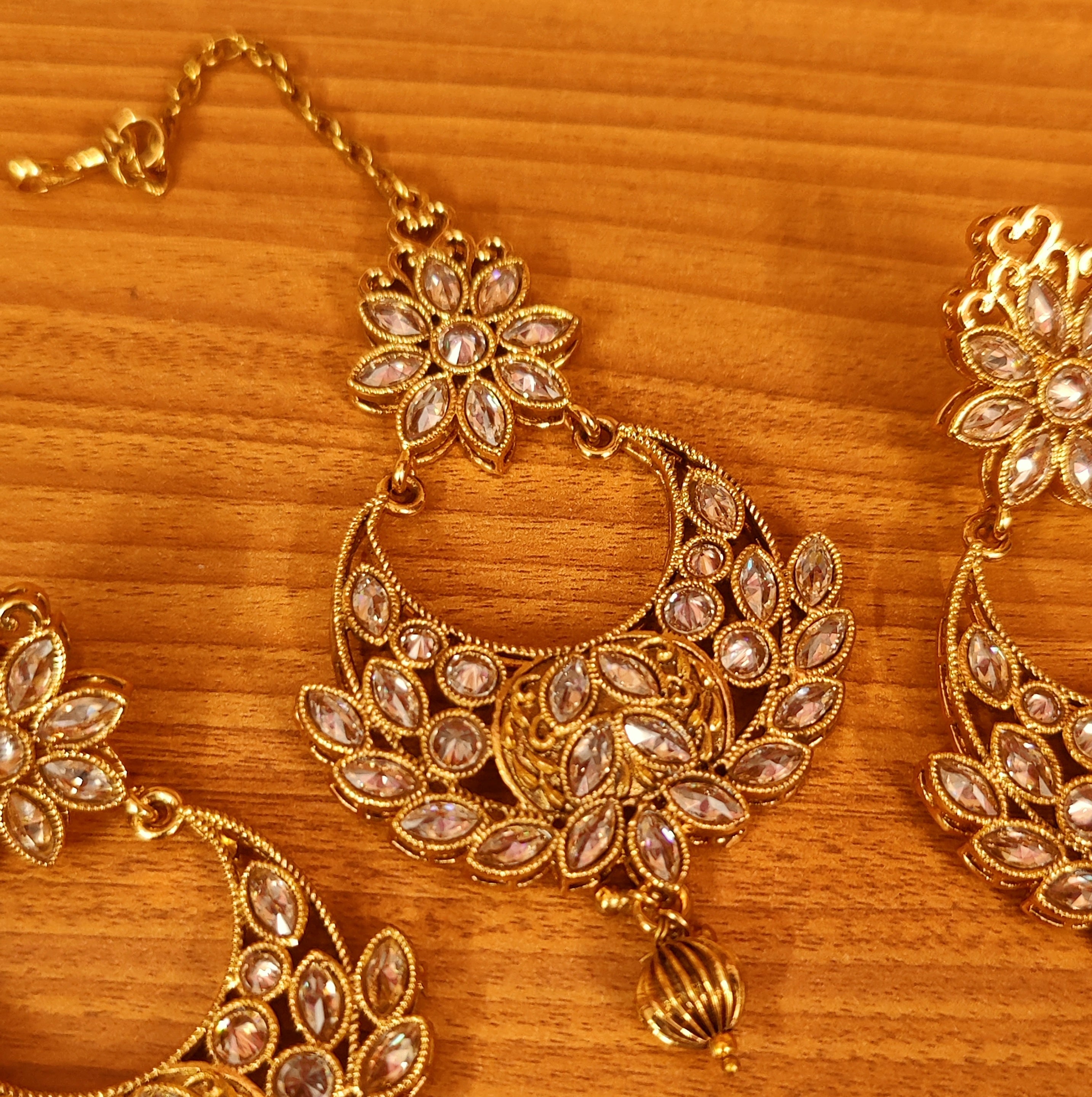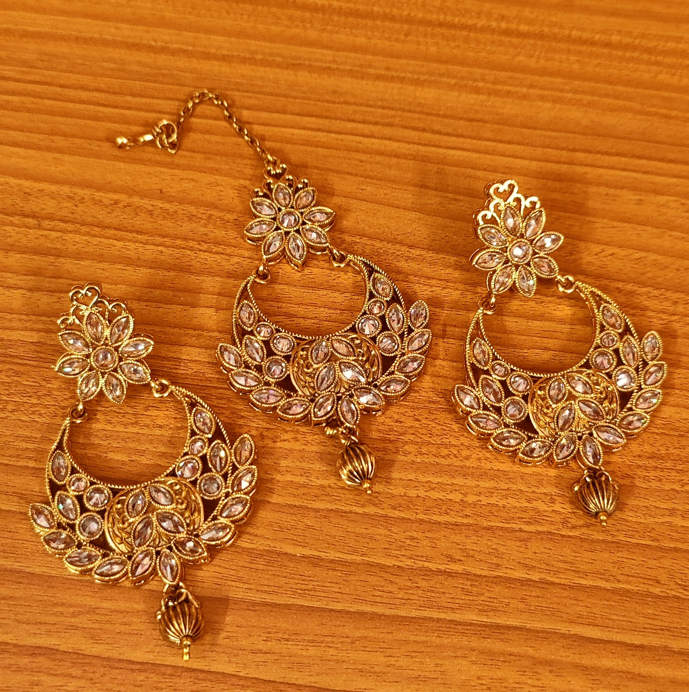POLKI STUDDED ANTIQUE LOOK EARRINGS & TIKKA SET