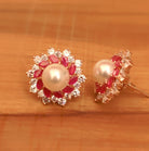 RUBY & PEARL CZ STUDDED ROSE GOLD STUDS
