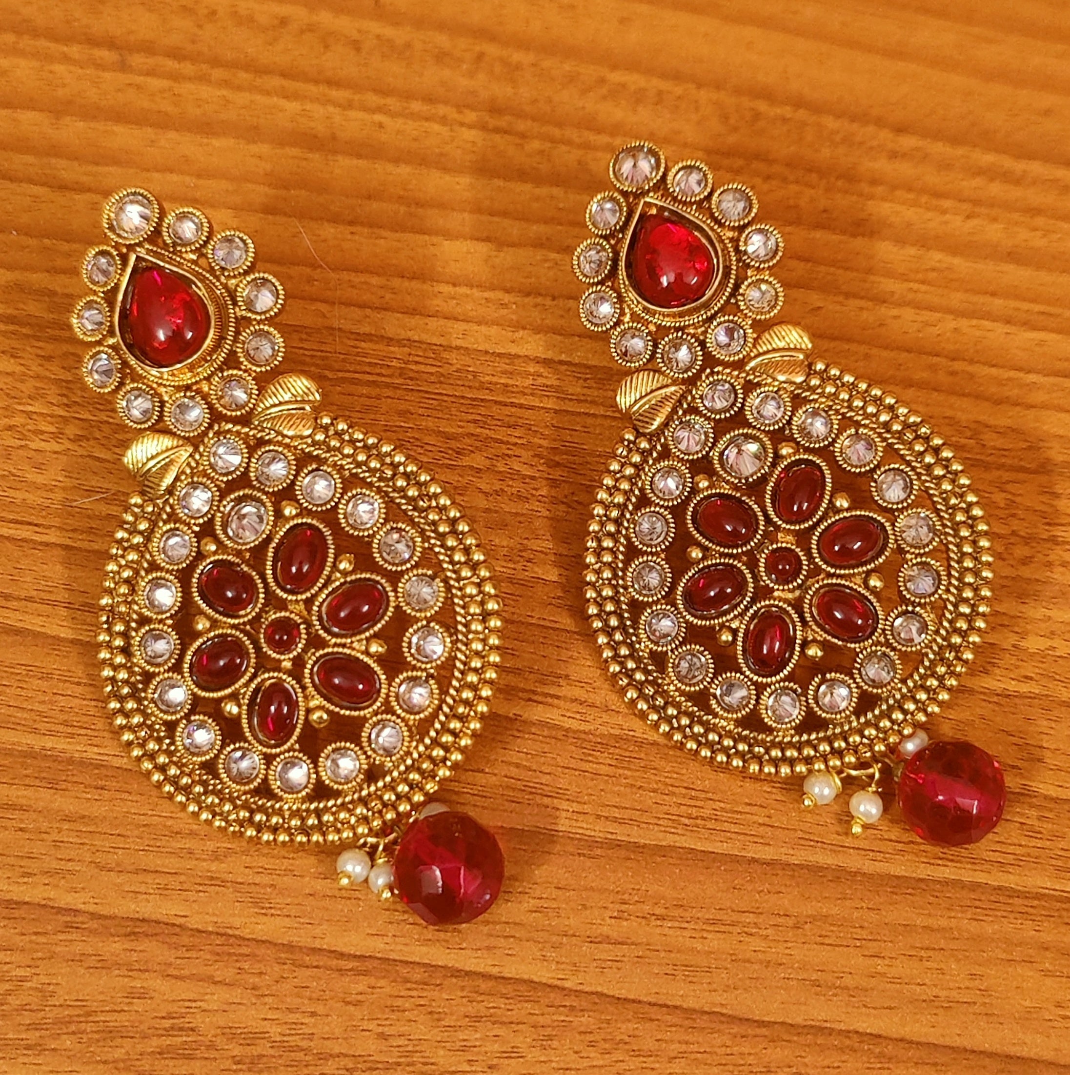 RUBY POLKI ANTIQUE LOOK DANGLERS