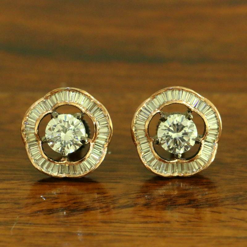 These diamond look studs are handcrafted in silver alloy with imitation cz stones of very fine quality. These earrings are plated in black rhodium plating which gives the design a real jewelry look , these earrings are very light in weight.