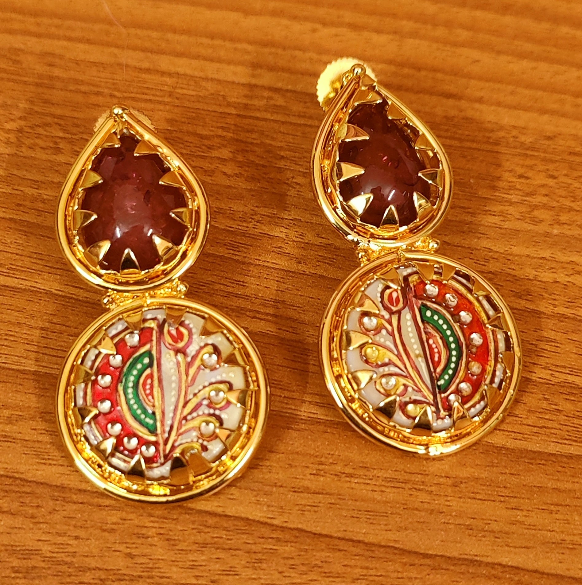 TANJORE ART GOLD PLATED ETHNIC EARRINGS
