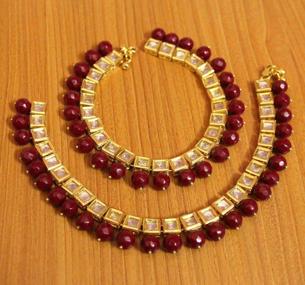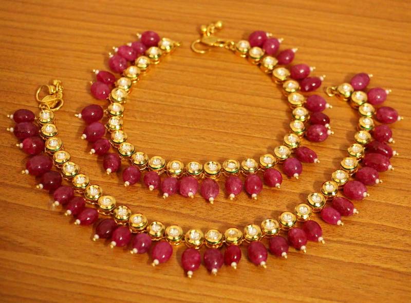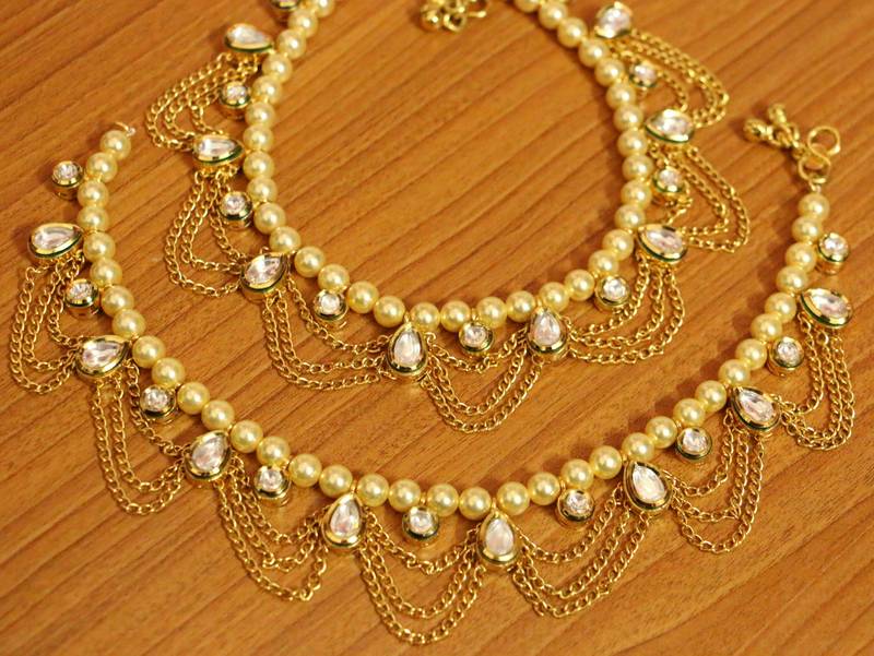 KUNDAN & PEARL GOLD PLATED ANKLETS